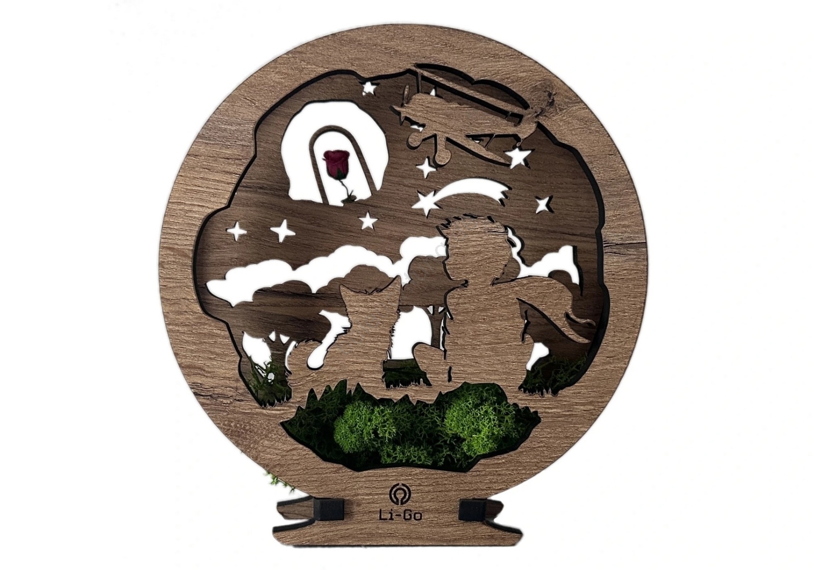 Li-Go 23634/DUB2 - Dimmbare LED-Tischdekoration LED/12W/230V 20x22 cm Eiche/Der kleine Prinz mit Rose