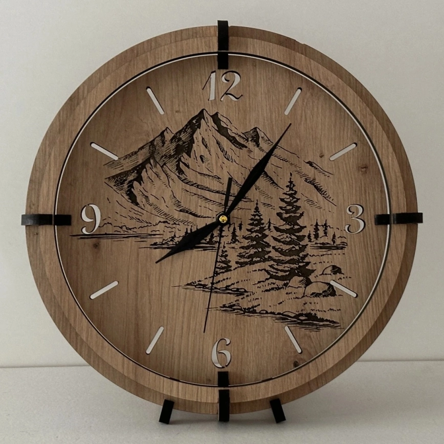 • Holzuhr mit einzigartigem, eingraviertem Motiv.