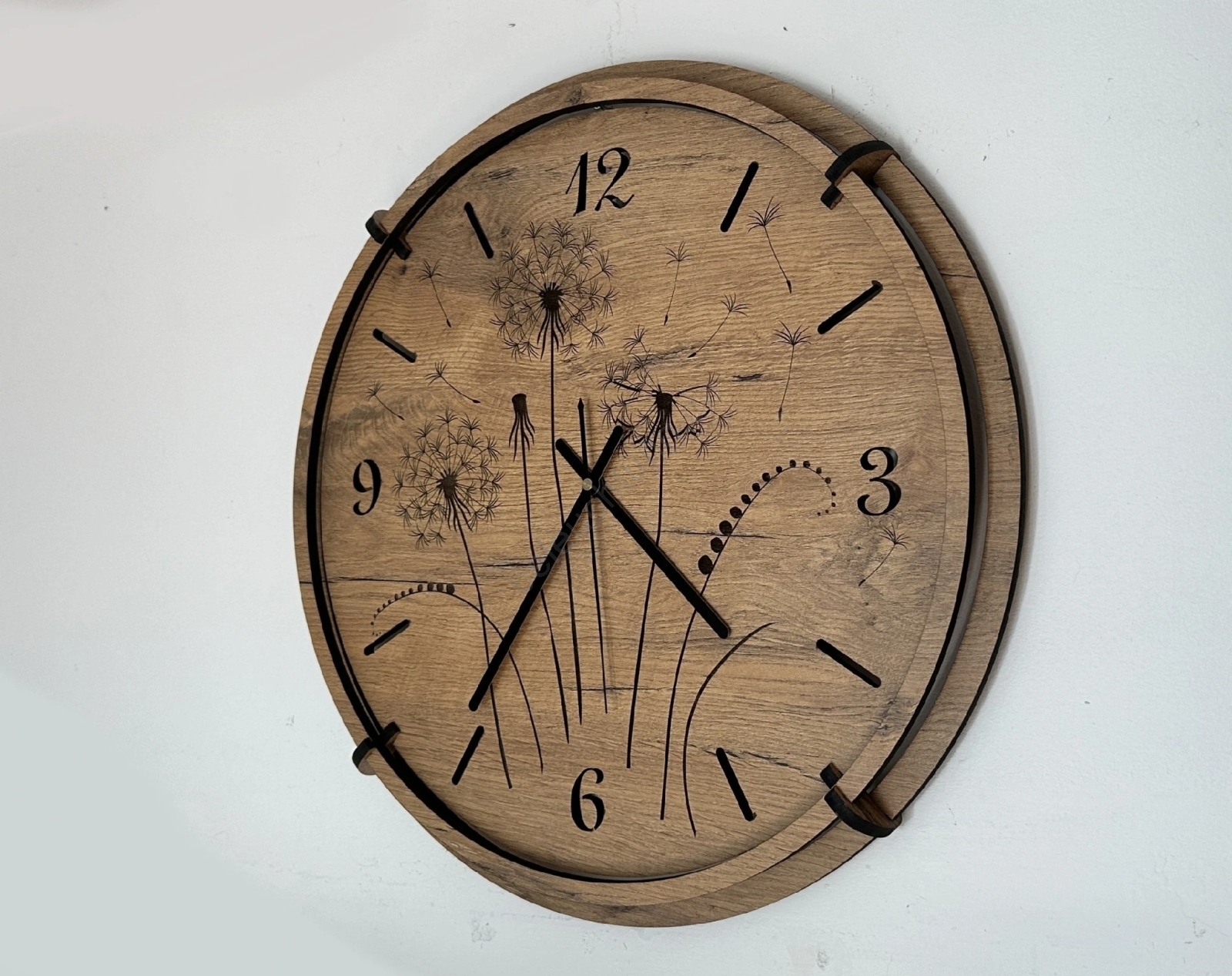 Li-Go 23682/DUB5 - Wanduhr 1xAA Ø 32 cm Eiche/Pusteblume