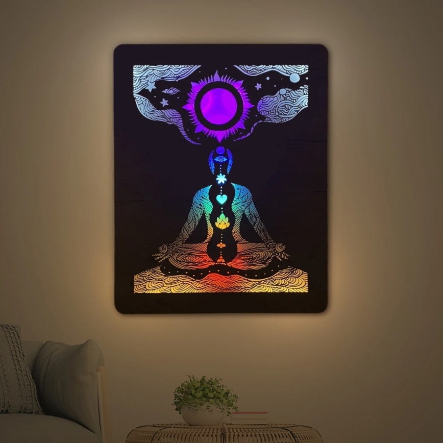 Li-Go 4421/A/4 - Dimmbare LED-Wanddekoration LED/10W/5V 30000 mAh 70x90 cm Eiche/Chakren