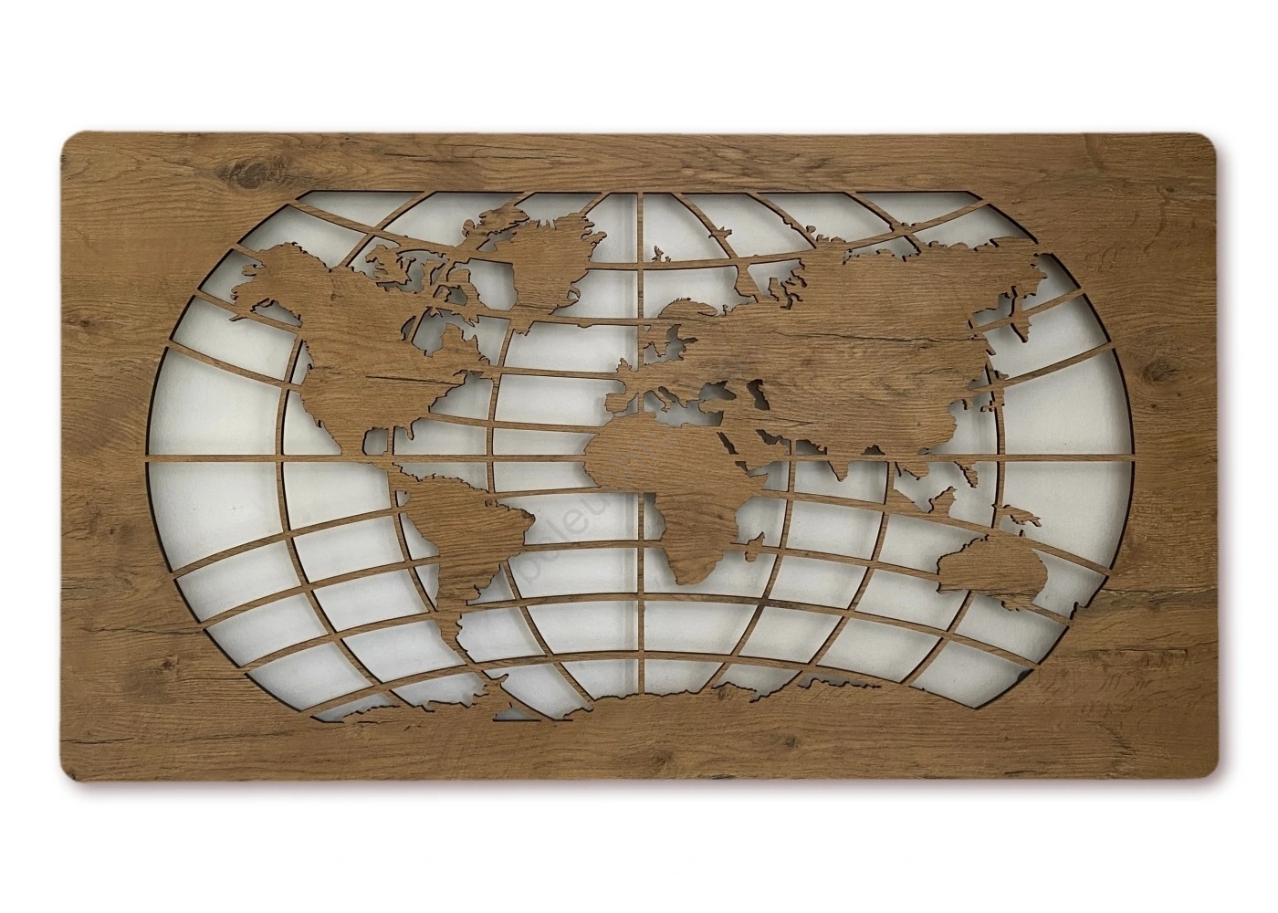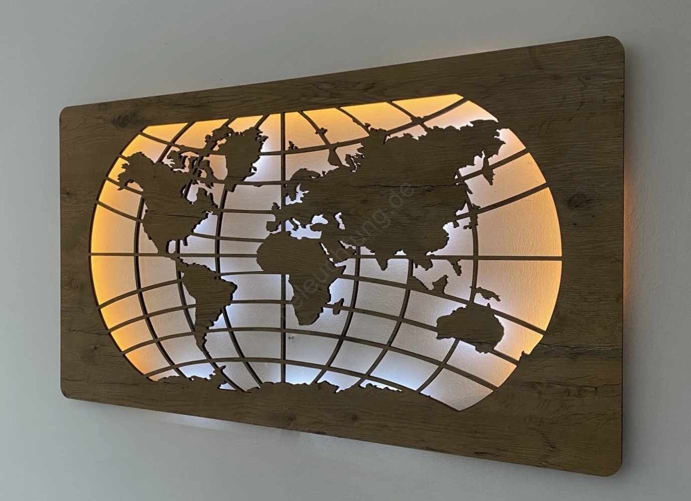 • Dekorative LED-Bildleuchte mit Weltkartenmotiv.