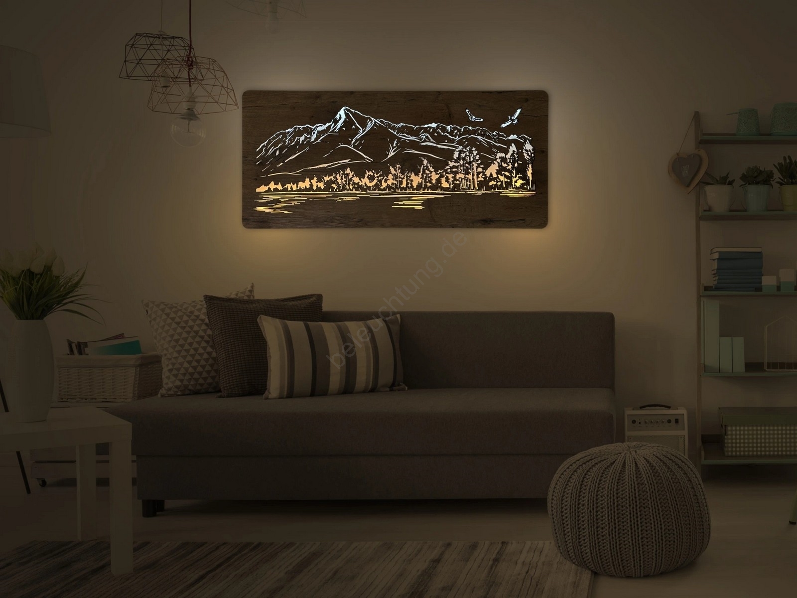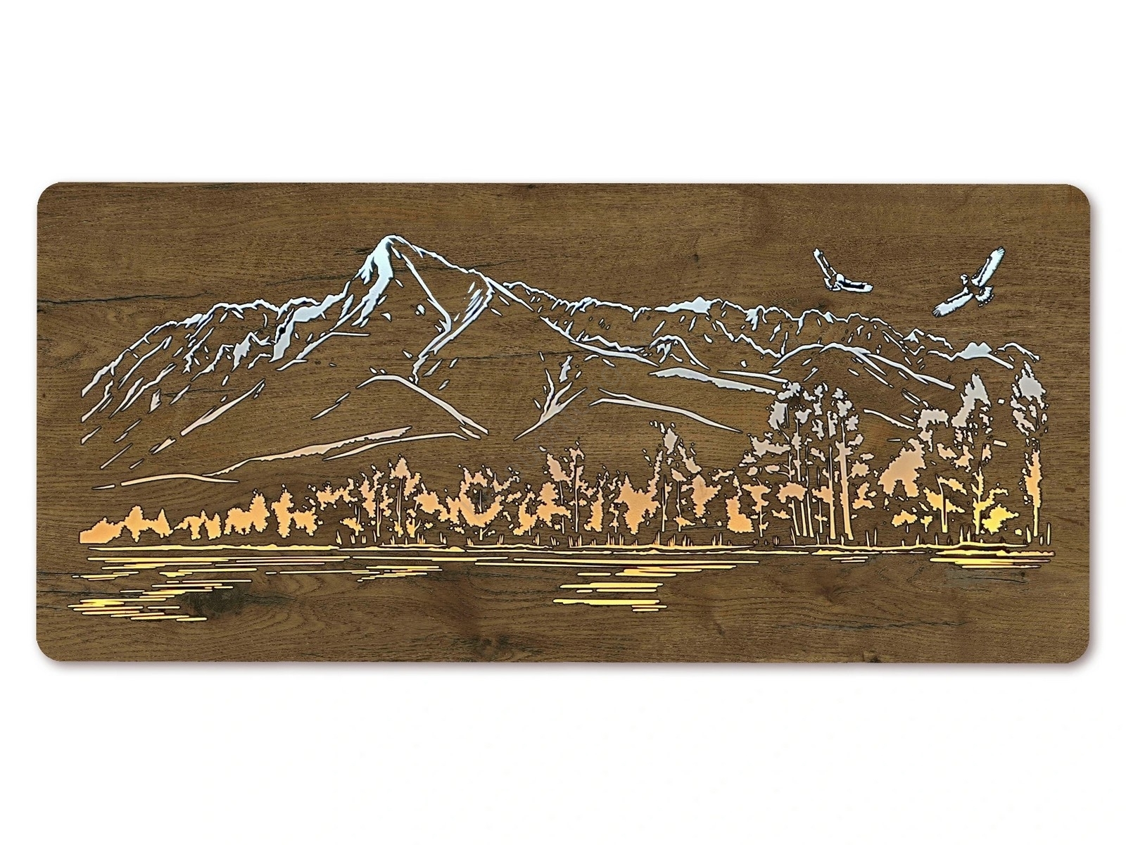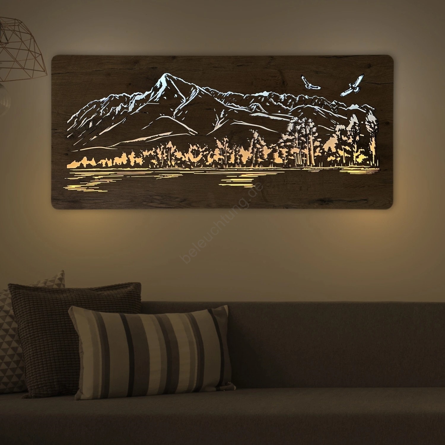 Li-Go 5589/A/DUB2 - Dimmbare LED-Wanddekoration LED/10W/5V 30000 mAh 110x50 cm Eiche/Berge mit Vögeln