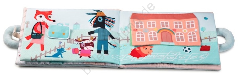 • Wunderschönes Stoffbuch voller bunter Bilder und interaktiver Aktivitäten.