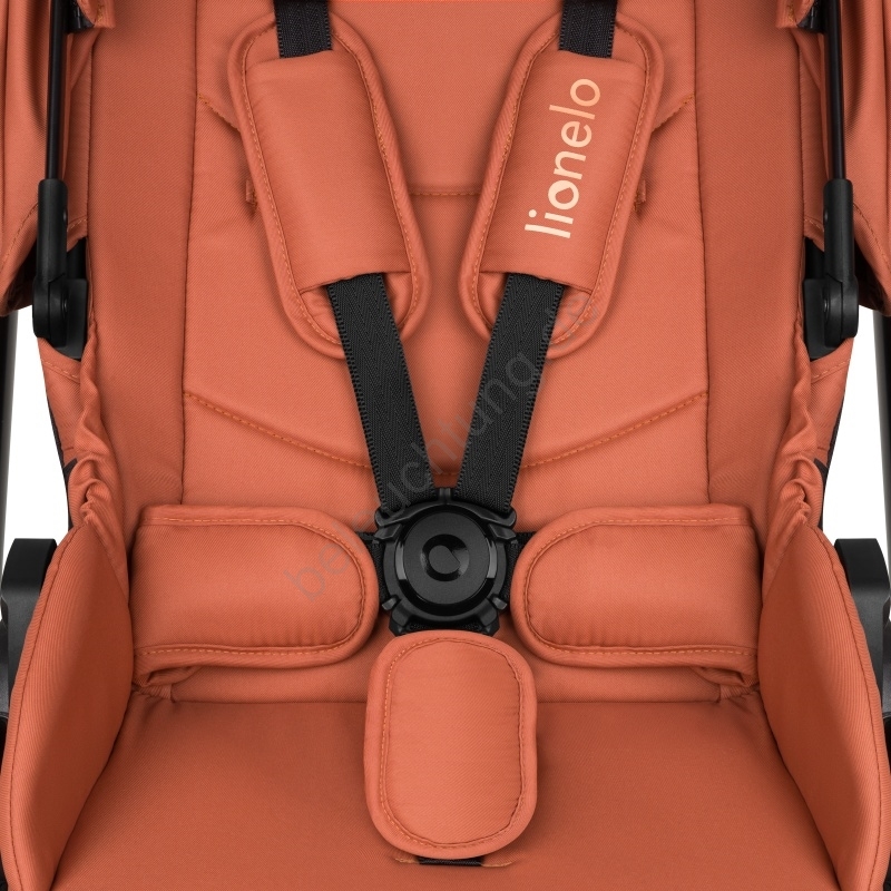 • 5-Punkt-Gurt mit weichen Polstern und magnetischer Gurtschnalle.