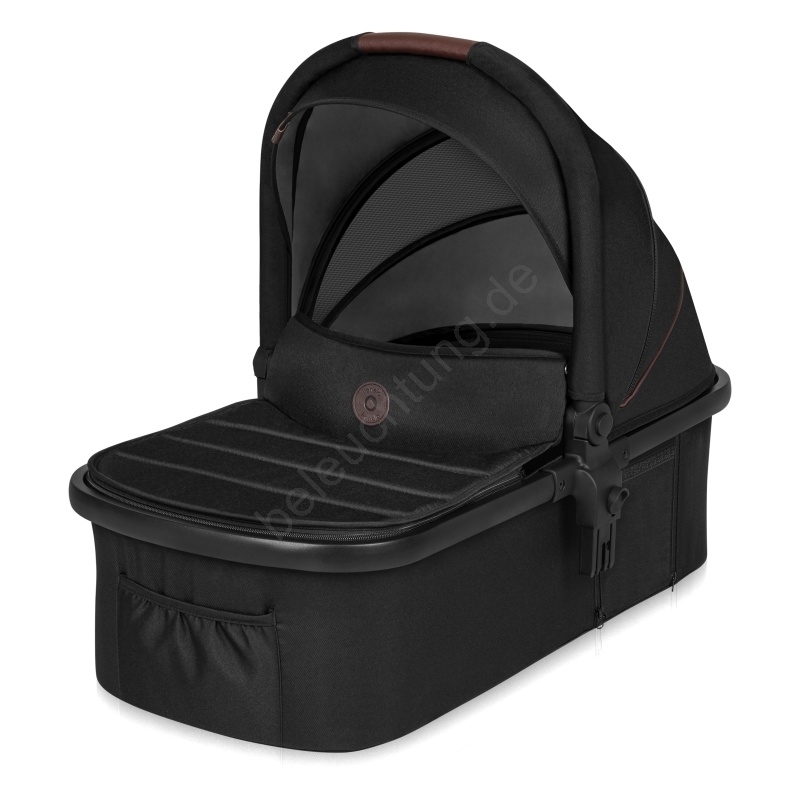 • Umfangreiches Zubehör: Tasche, Moskitonetz, Regenverdeck, Wickelunterlage, Fußsäcke, Matratze.
