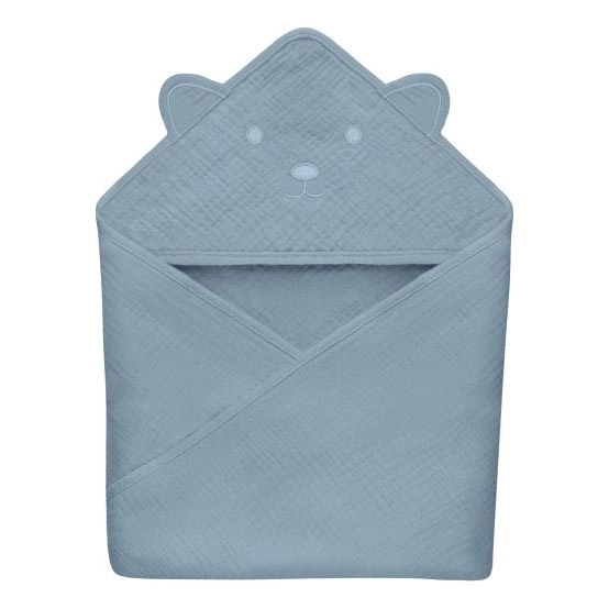 Lionelo - Kinder-Musselin-Kapuzenhandtuch Himmelgrau
