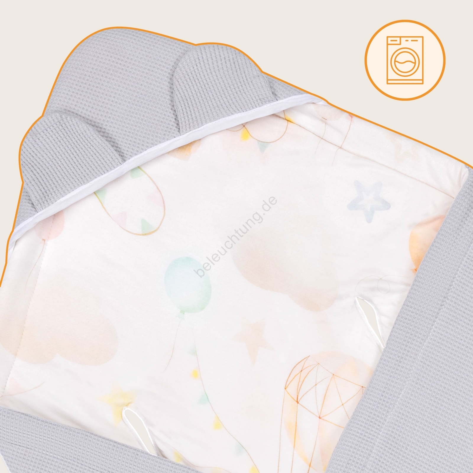 • Der Pucksack aus weichem Baumwollmaterial mit Füllung ermöglicht es, Ihr Baby schnell und unkompliziert einzuwickeln und ihm ein Gefühl von Sicherheit, Wärme und Komfort zu geben.