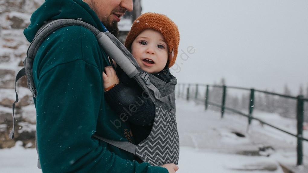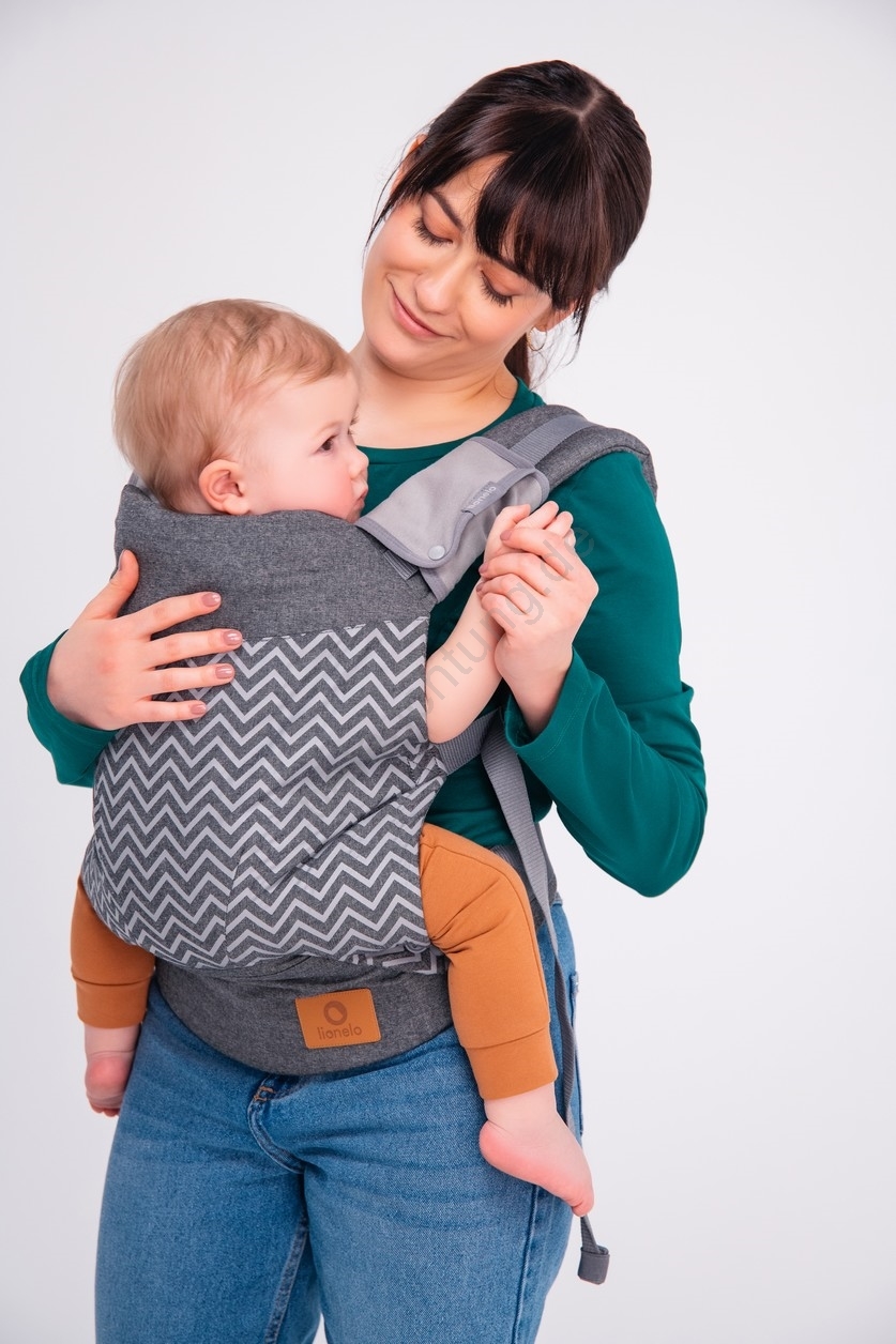 • Das breite Stoffpanel unterstützt die Wirbelsäule des Kindes in einer natürlichen Position.
