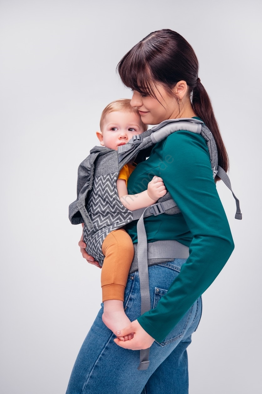 • Das Tragetuch MARGAREET ermöglicht es, das Kind in 3 Positionen je nach Alter zu tragen.