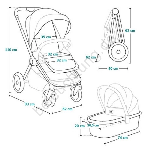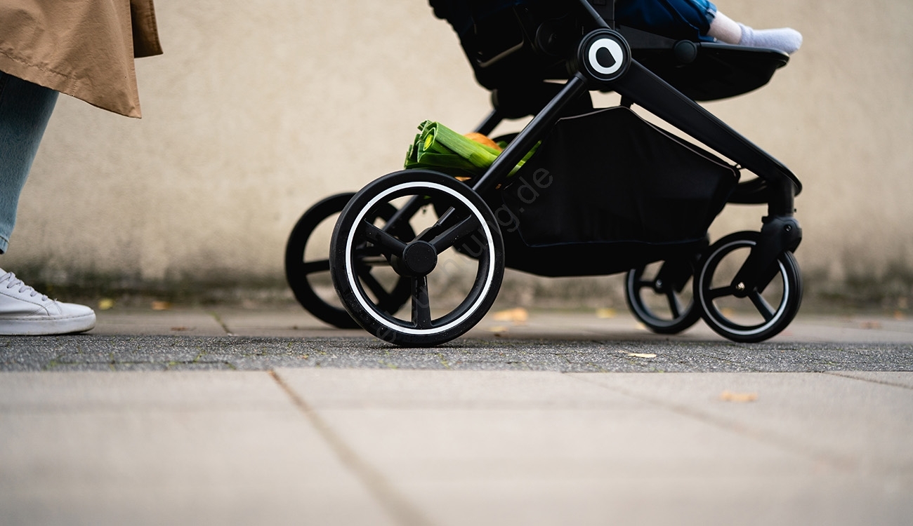 • Umfangreiches Zubehörset: Fußsack, Moskitonetz, Regenverdeck, Adapter für Autokindersitze.