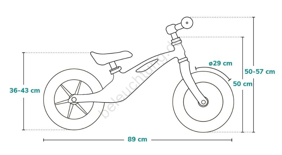 • Höhenverstellbarer Lenker (50 - 57 cm) und Sattel (36 - 43 cm) gewährleisten eine optimale Anpassung für Kinder bis zu 6 Jahren.