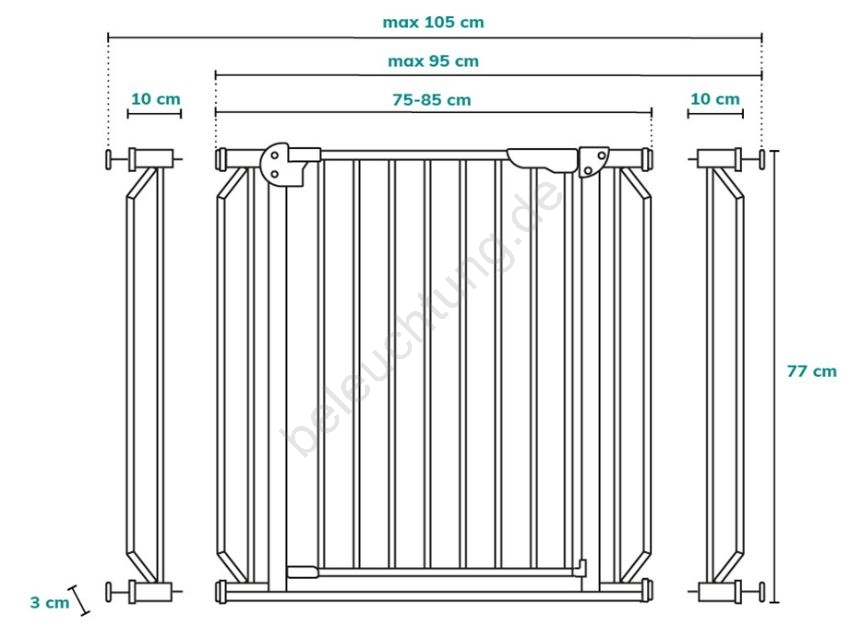 • Schnelle und einfache Montage in Durchgängen mit einer Breite von 75 - 105 cm.
