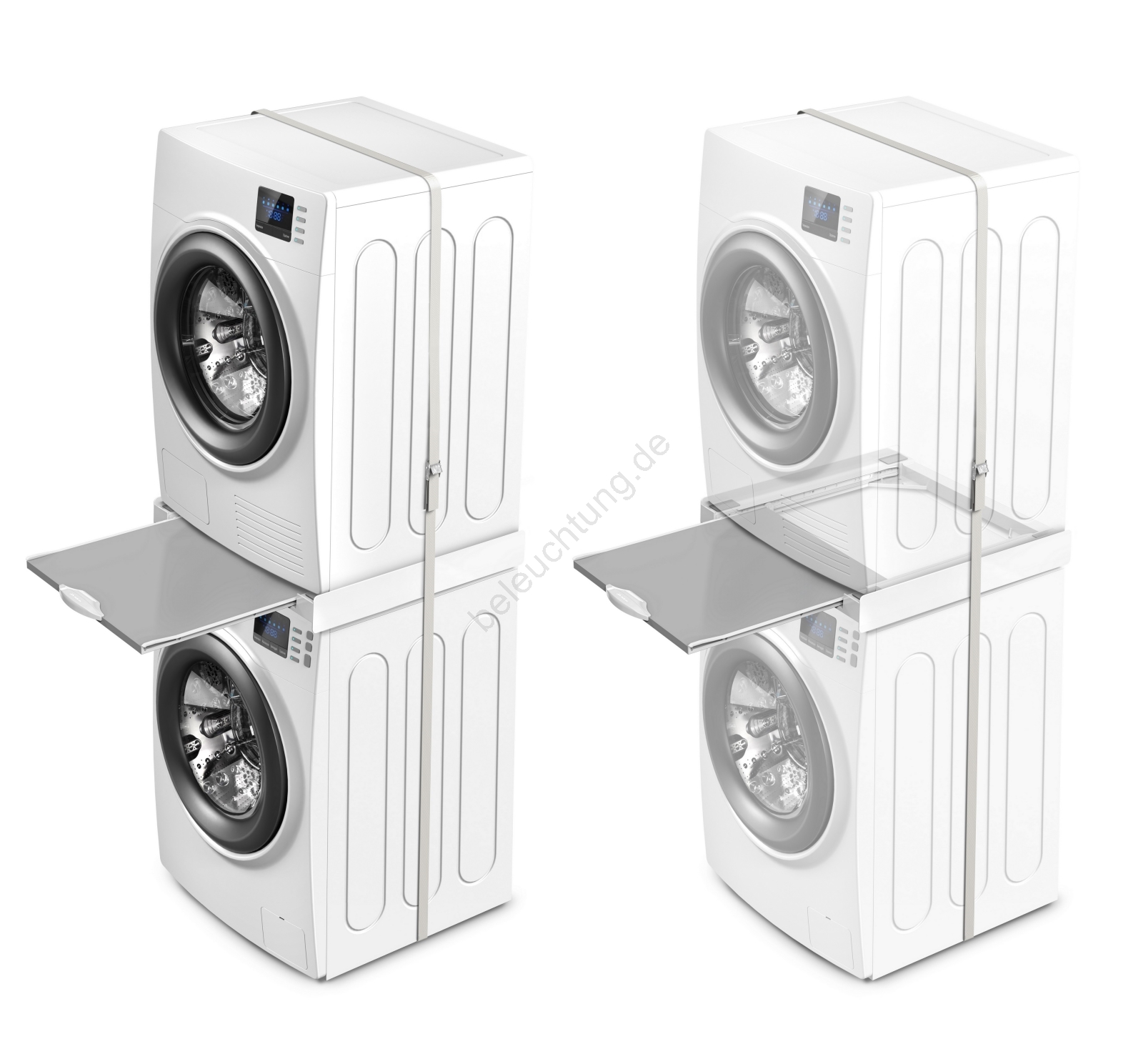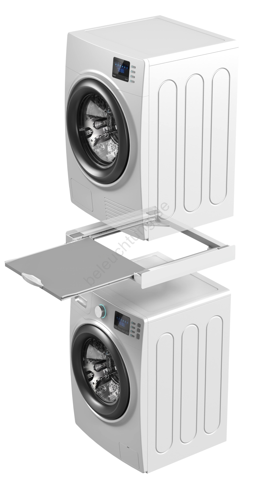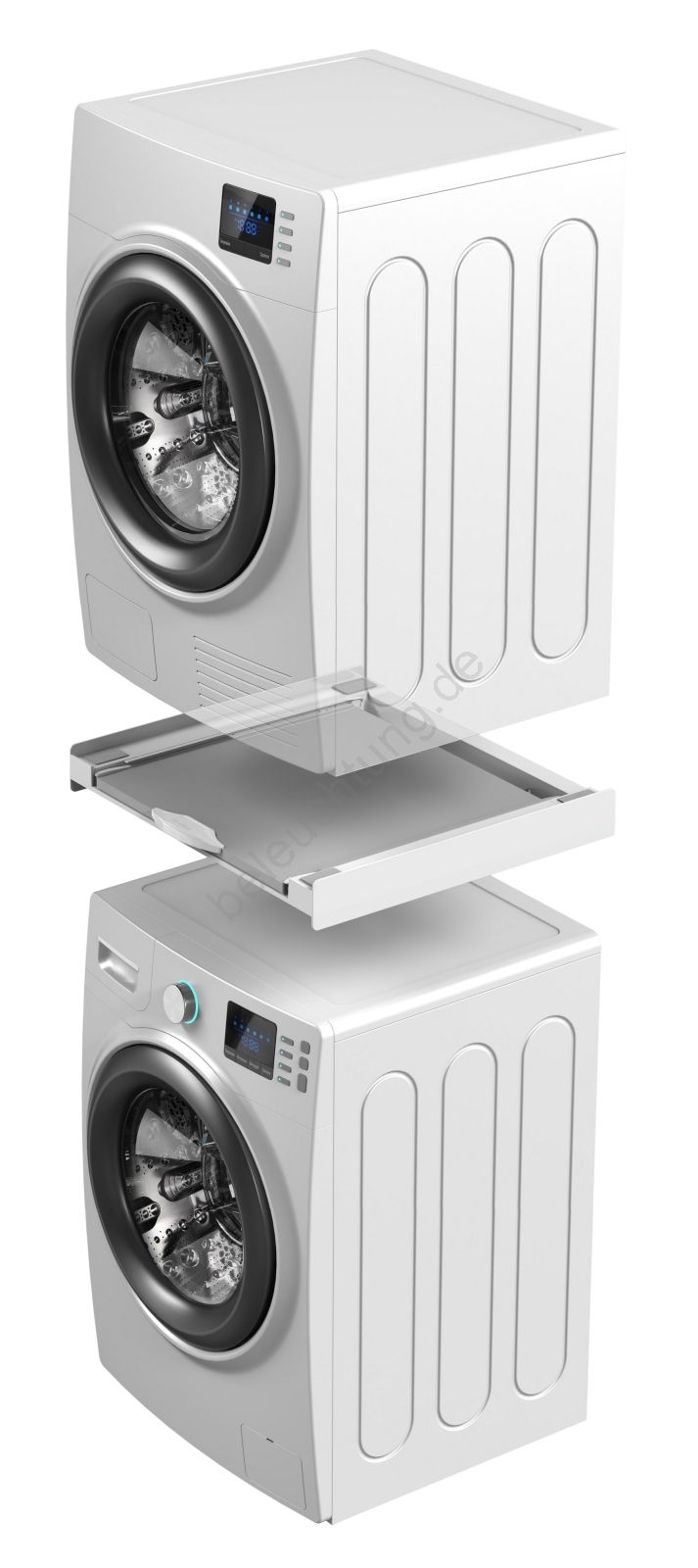 • Das Zwischenstück ist für das sichere Stapeln von Waschmaschine und Trockner konzipiert und spart so deutlich Platz im Haushalt.