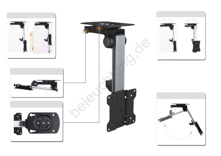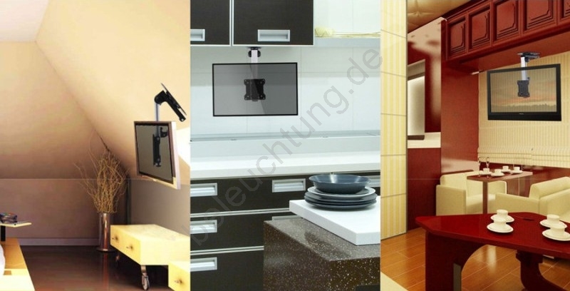 • Neigbare TV-Deckenhalterung zur Montage von Fernsehern an der Decke, auch an Dachschrägen in Dachräumen.