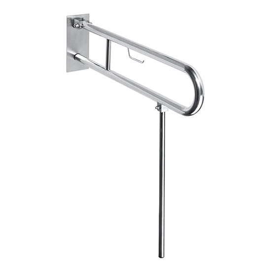 • Klappgriff in U-Form mit Stützfuß und integriertem Toilettenpapierhalter.
