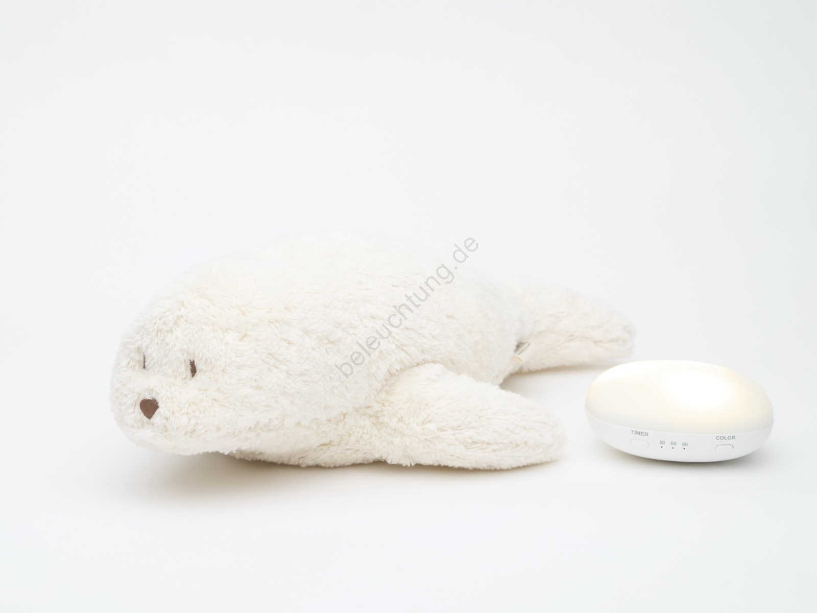 • Der Bauch des Seehunds leuchtet und dient als Nachtlicht mit Auswahl aus sieben Leuchtfarben.