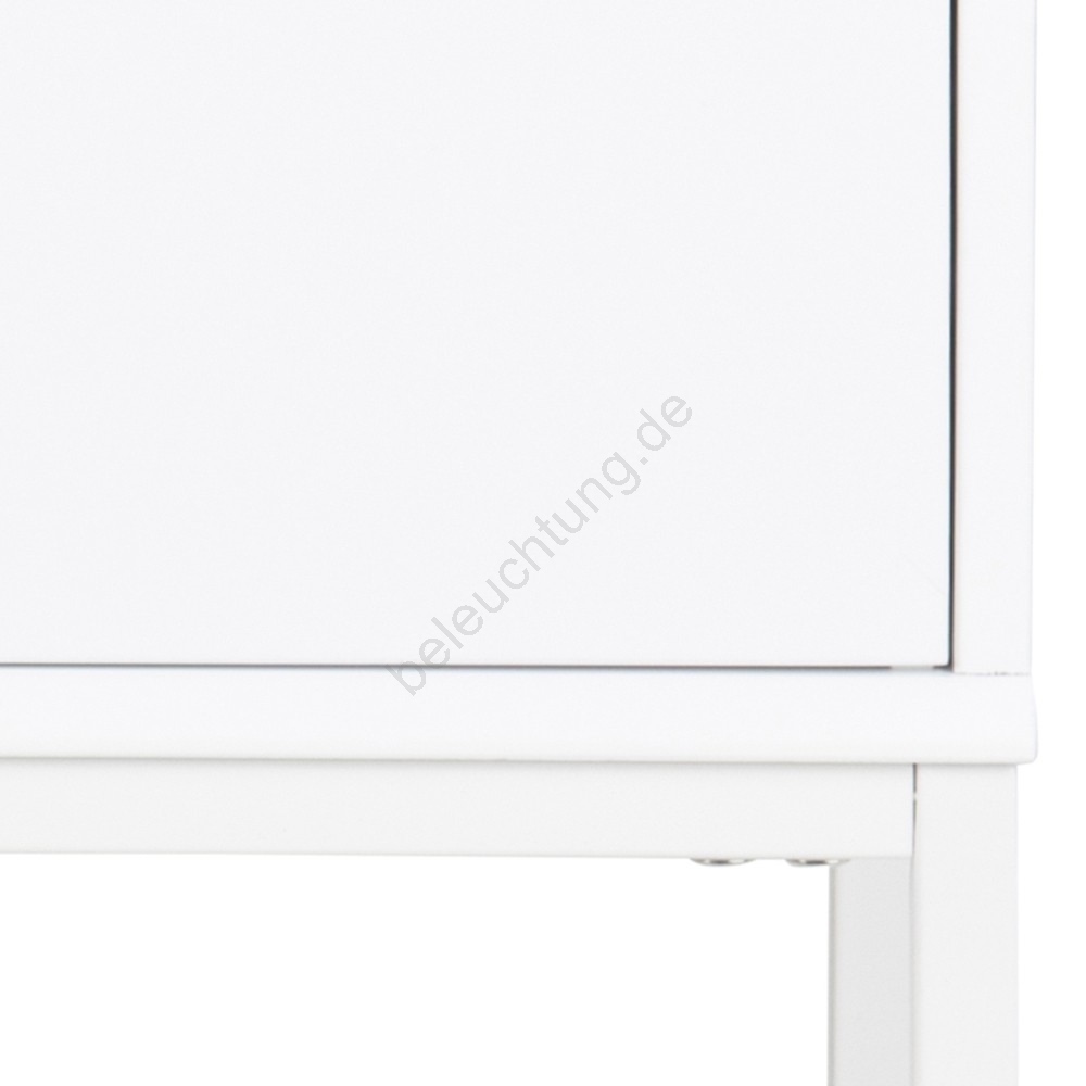 • Die Tischplatte, der Rahmen und die Schublade aus MDF, UV-lackiert in Weiß, das Gestell aus Stahl mit weißer Pulverbeschichtung.