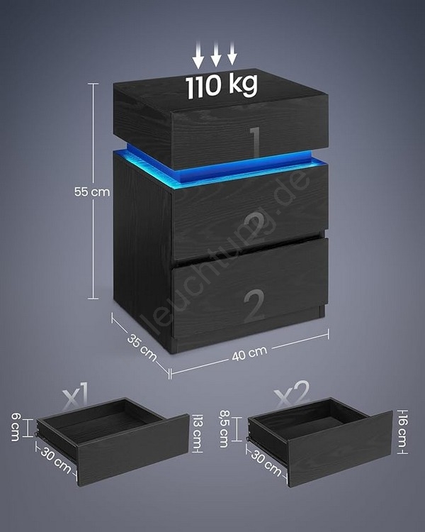 Nachttisch SMARTIE mit Beleuchtung, schwarz