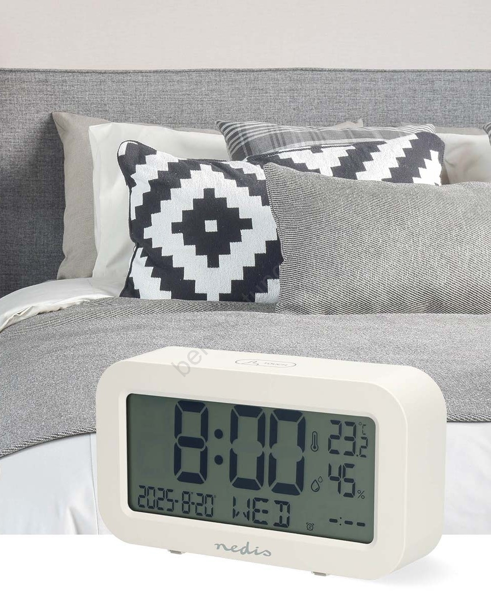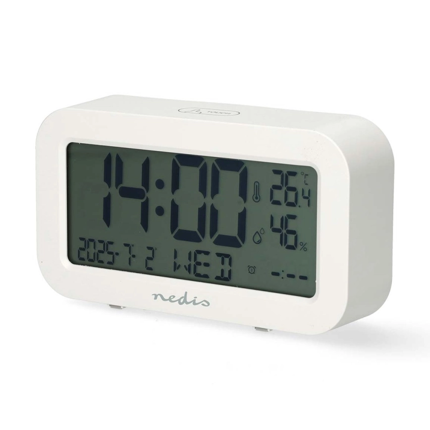 Digitale Uhr mit Wecker, Thermometer und Hygrometer, 2×AA, weiß