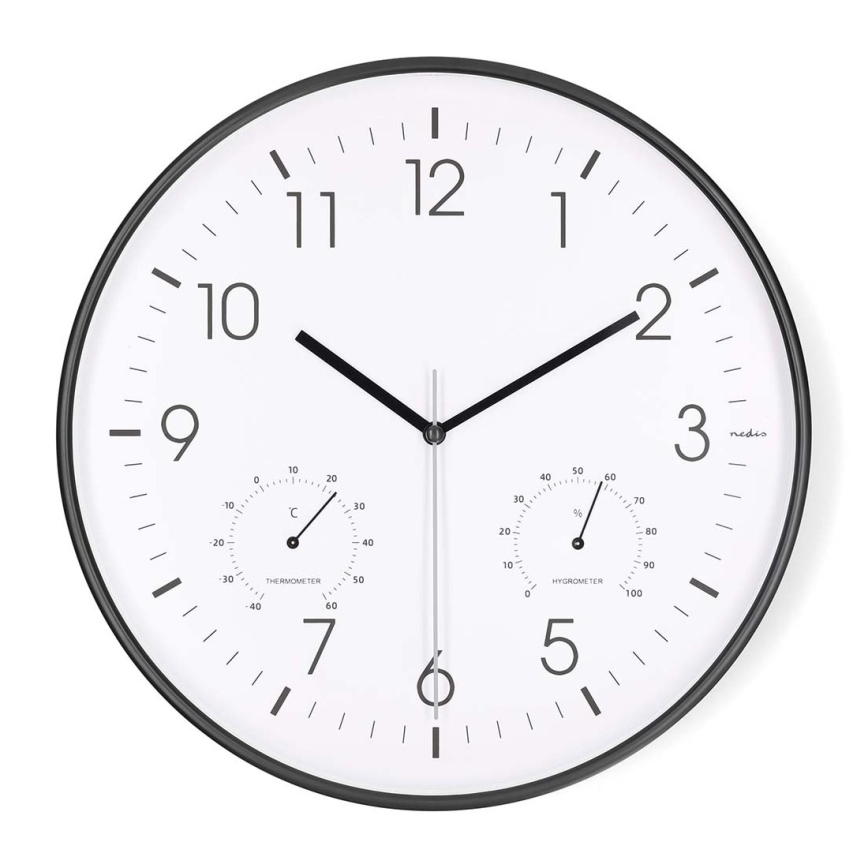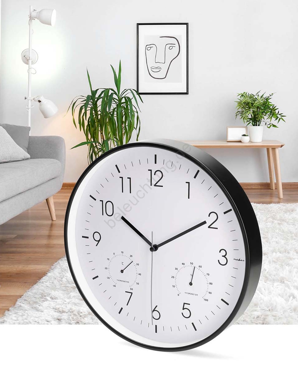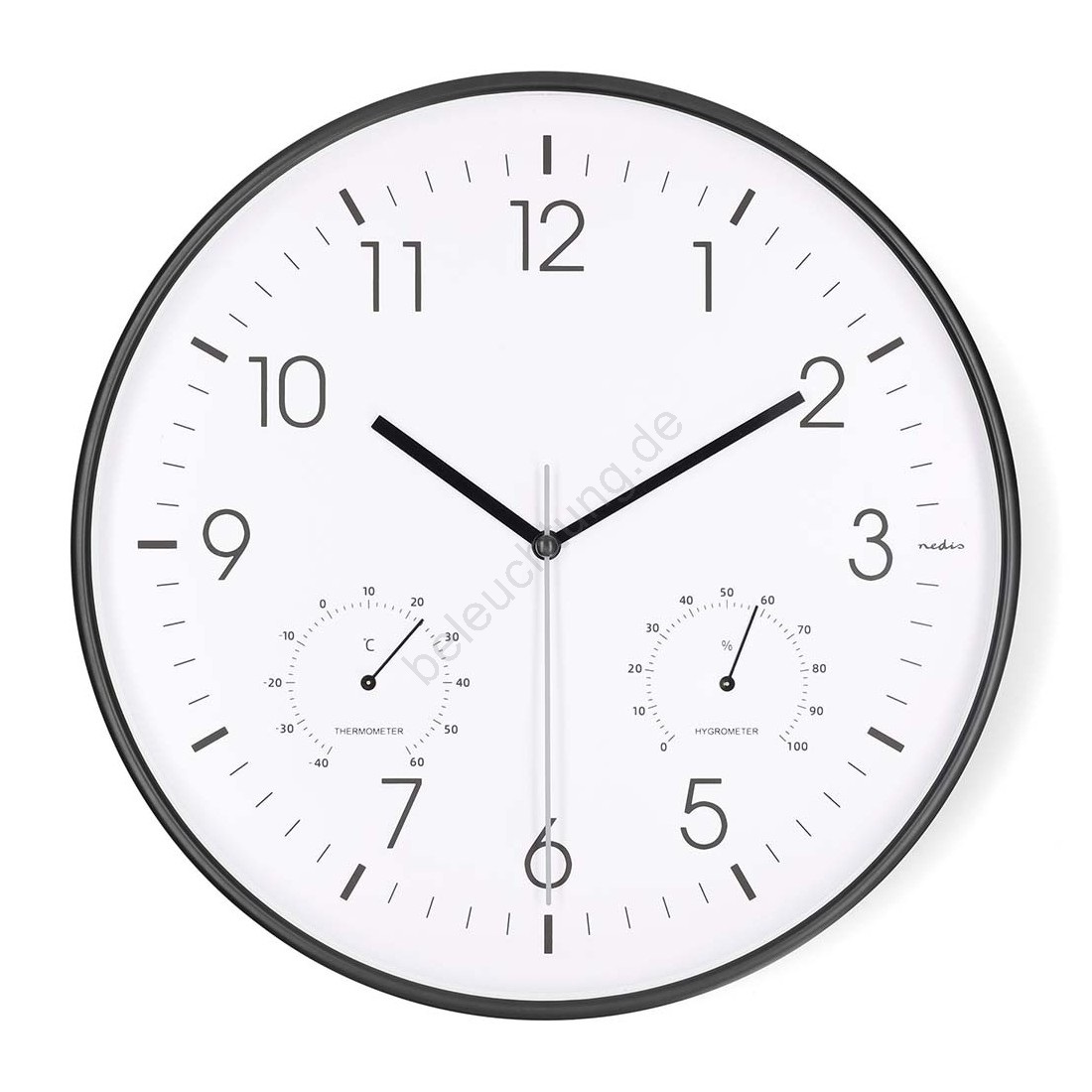 Wanduhr mit Thermometer und Hygrometer, Durchmesser 30,5 cm, 1xAA, schwarz