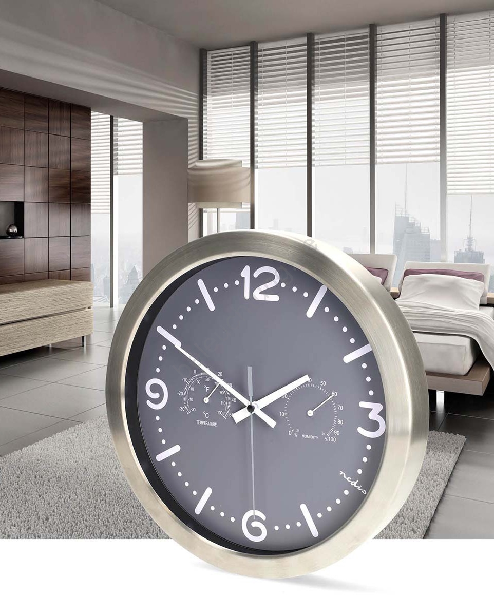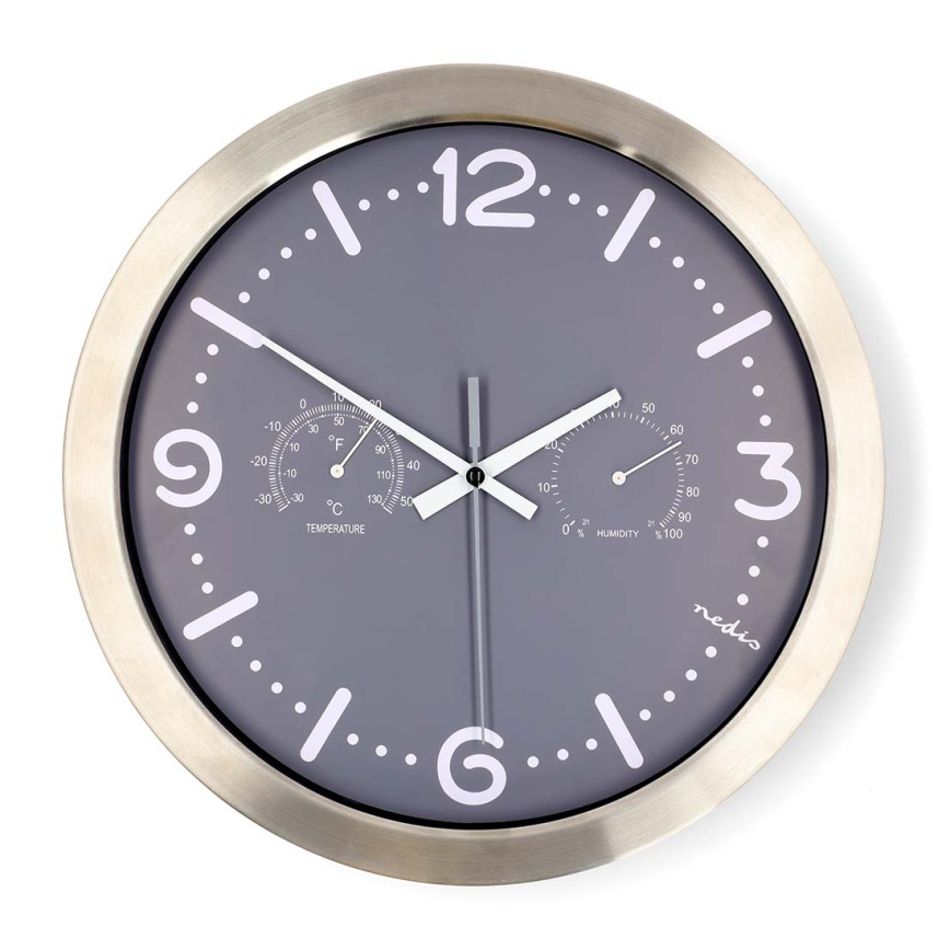 Wanduhr mit Thermometer und Hygrometer Ø 30,5 cm 1xAA Edelstahl/grau