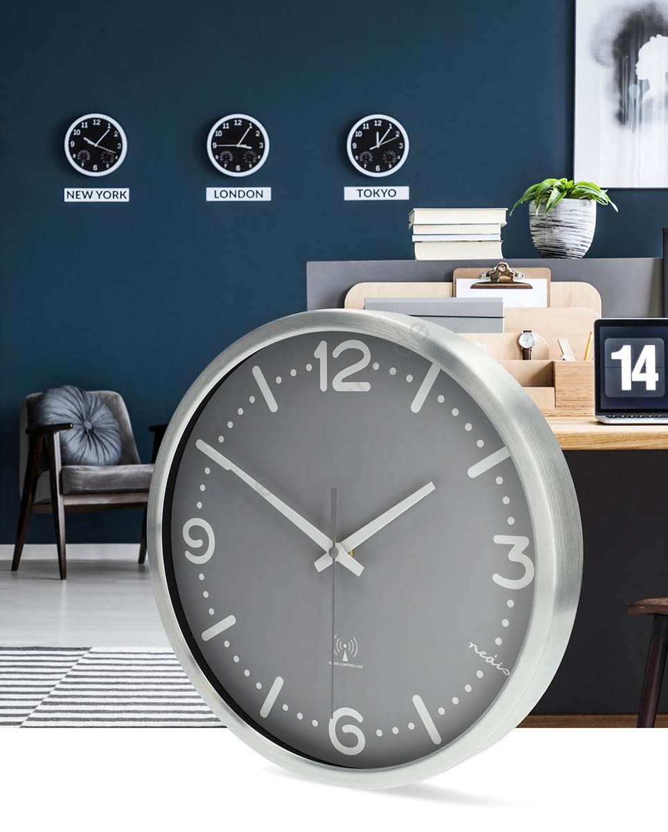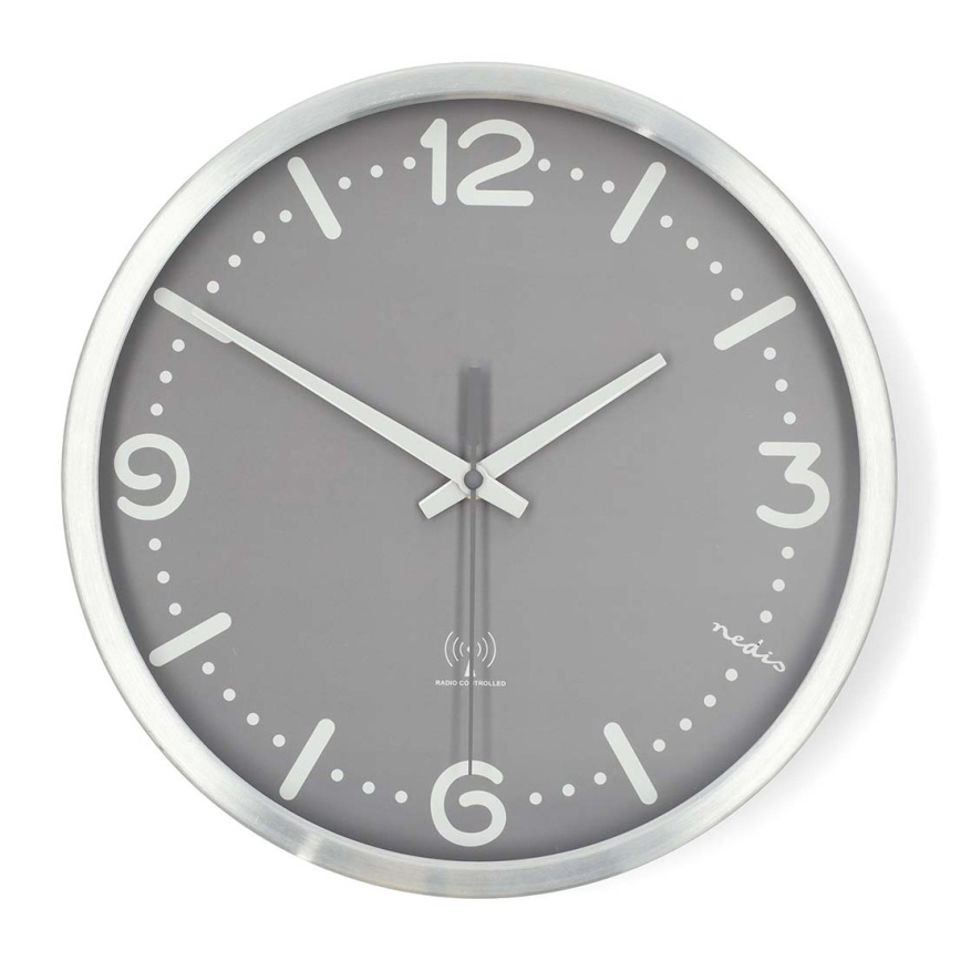 Wanduhr Ø 30,5 cm, 1xAA, mattchrom/grau