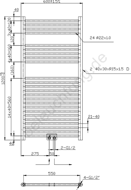 Novaservis - Handtuchheizkörper 644W/230V 120x60 cm schwarz gerade