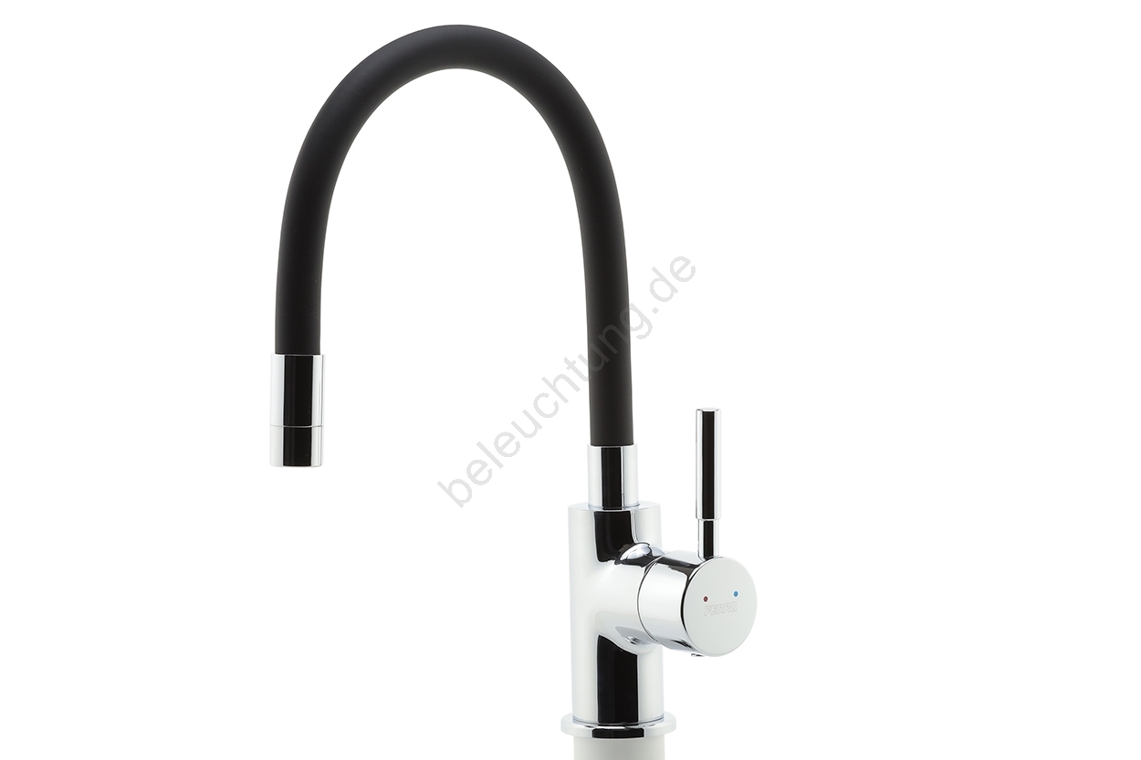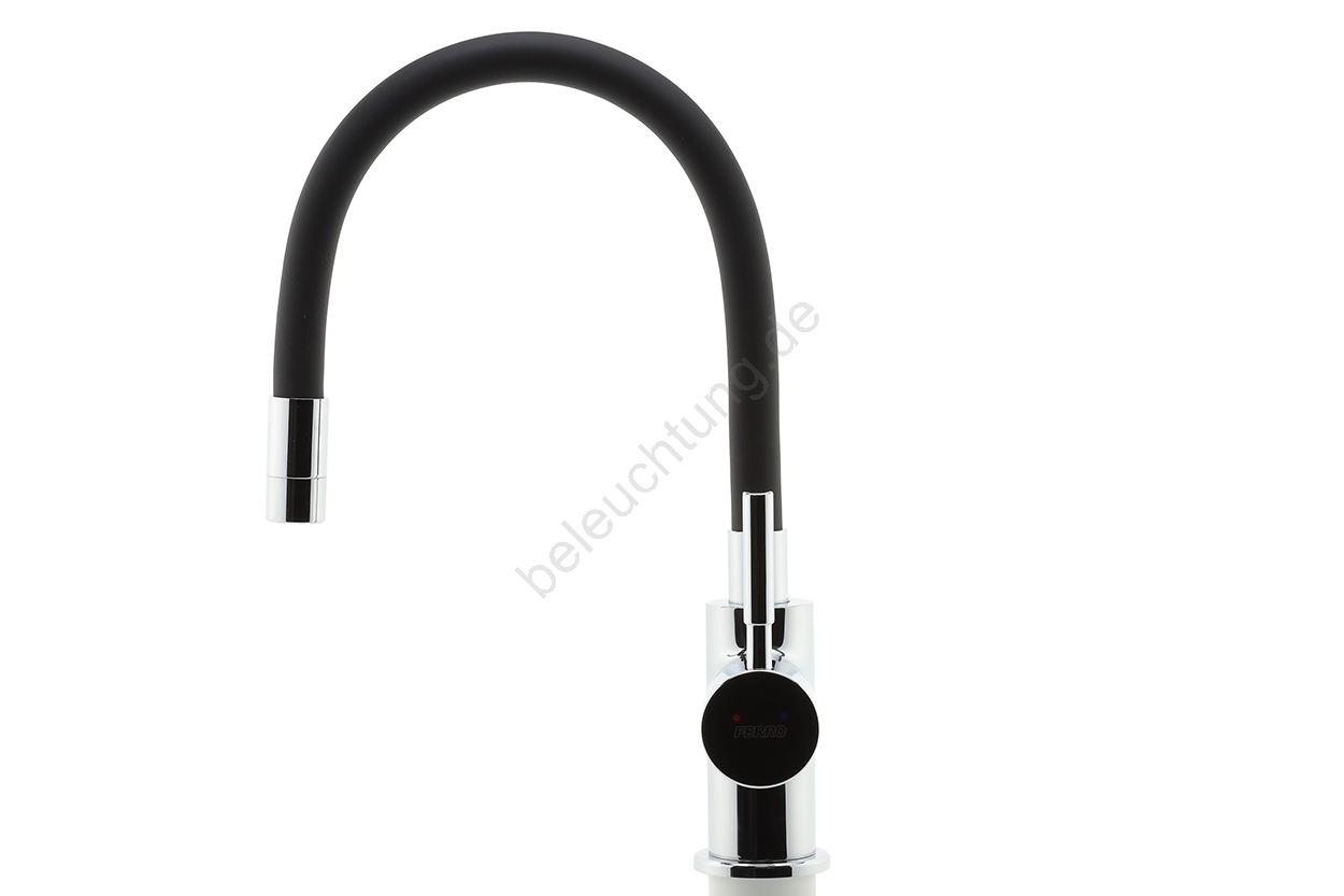 FERRO - Wasserhahn (Armatur) mit flexiblem Arm glänzendes Chrom/matt schwarz