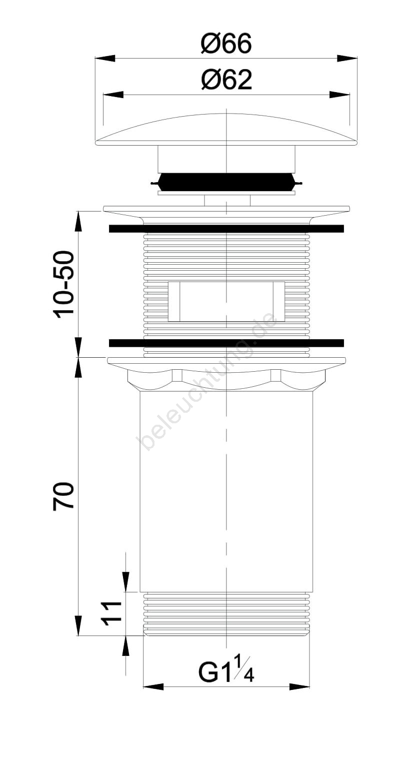 • Mechanismus, der ein einfaches Öffnen und Schließen des Waschbeckenablaufs durch einfaches Drücken des Stöpsels ermöglicht.