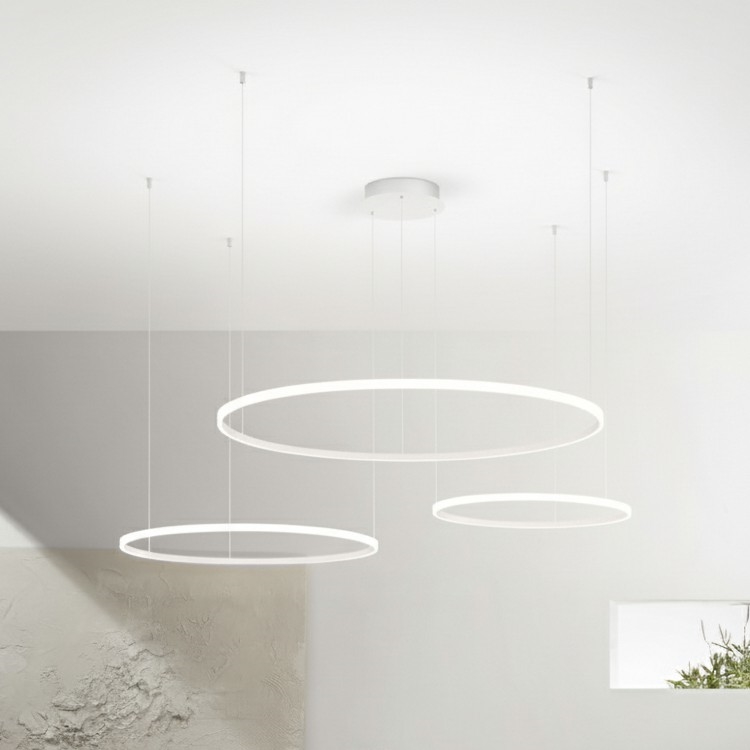 Ondaluce - LED-dimmbare Pendelleuchte mit Kabelabhängung SOEL LED/28W/230V + LED/38W + LED/47W Ø 100/80/60 cm weiß