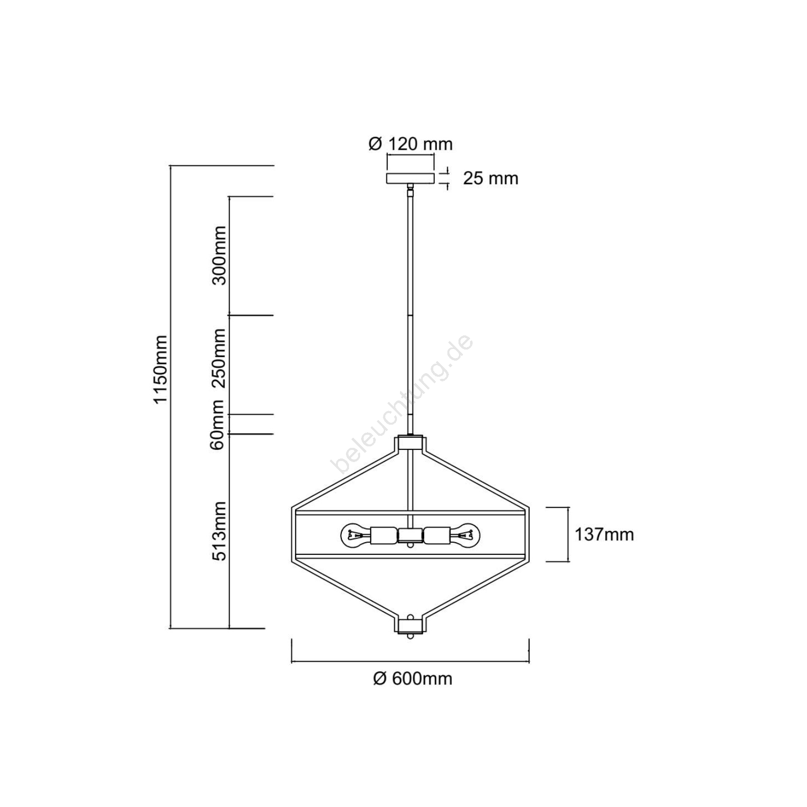 • Open Design OR85846 - ZUNDO Deckenleuchte mit Stange, 4xE27/15W/230V, braun/beige