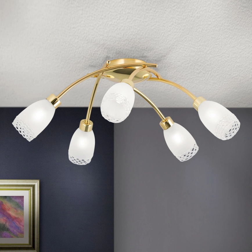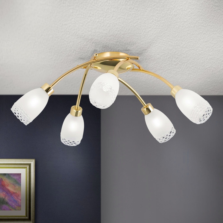 Deckenleuchte CARLA 5xG9/28W/230V gold zeichnet sich durch schönes und funktionales Design aus. Eine Glühbirne mit G9 Sockel ist für die Leuchte geeignet. Hier, können Sie andere Glühlampen zu vorteilhaften Preisen kaufen. Sie erhalten eine attraktive Ergänzung für Ihr Zuhause.