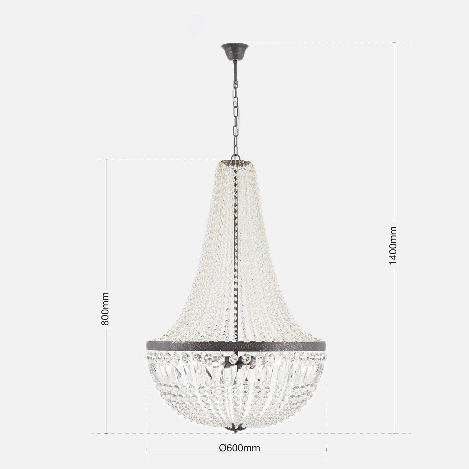 Kristall-Kronleuchter an Kette ARILA 6xE27/60W/230V d 60 cm braun/Patina zeichnet sich durch schönes und funktionales Design aus. Eine Glühbirne mit E27 Sockel ist für die Leuchte geeignet. Hier, können Sie andere Glühlampen zu vorteilhaften Preisen kaufen. Sie erhalten eine attraktive Ergänzung für Ihr Zuhause.