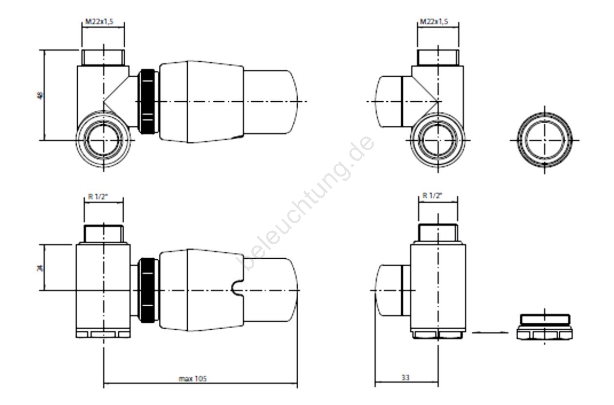 P.M.H. INTER-RW - Thermostatventil mit Thermostatkopf INTER rechts/weiß