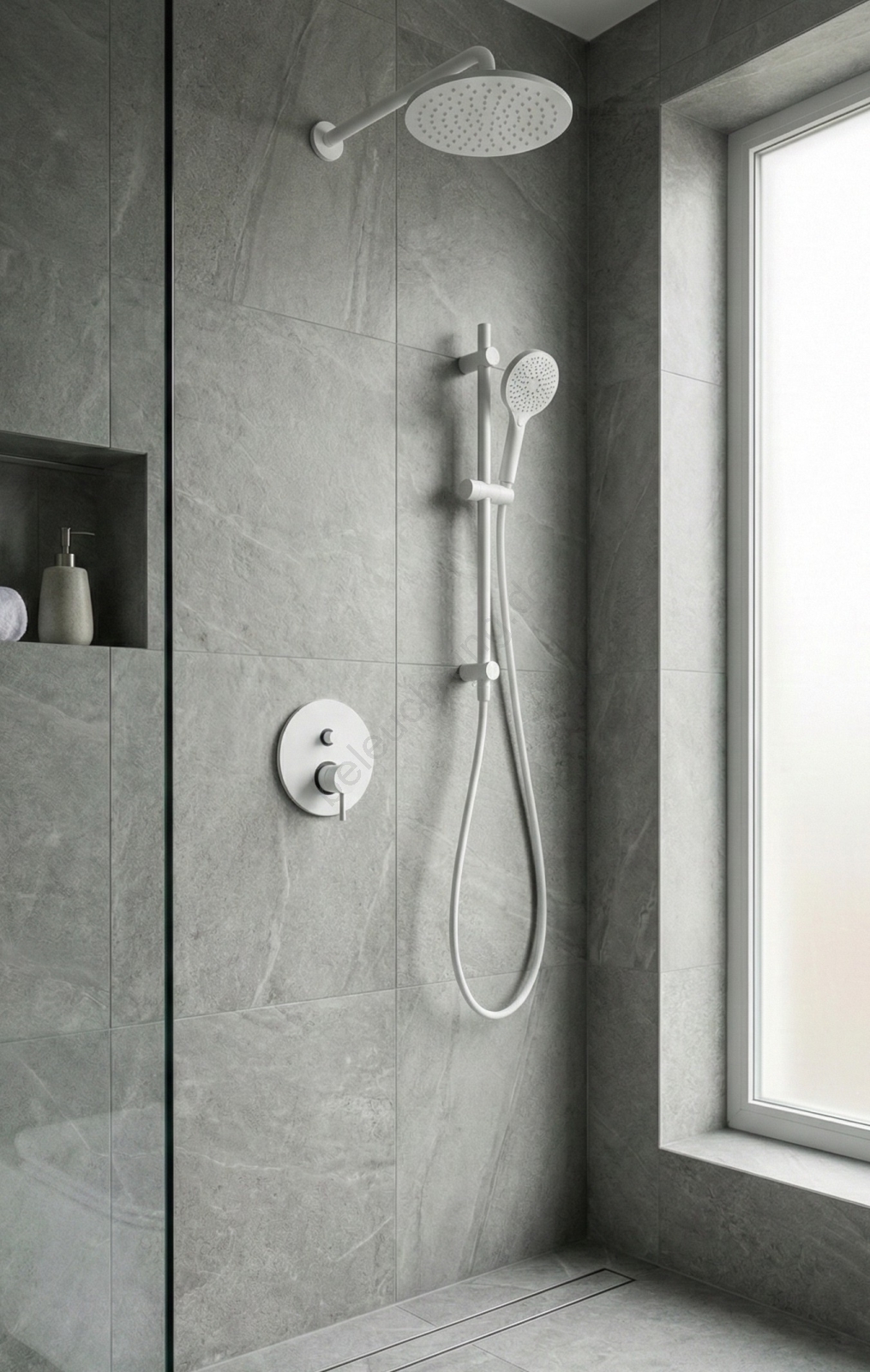 • Ein Einhebel-Unterputzmischer mit 2-Wege-Umsteller für Dusche und einen zusätzlichen Anschluss.