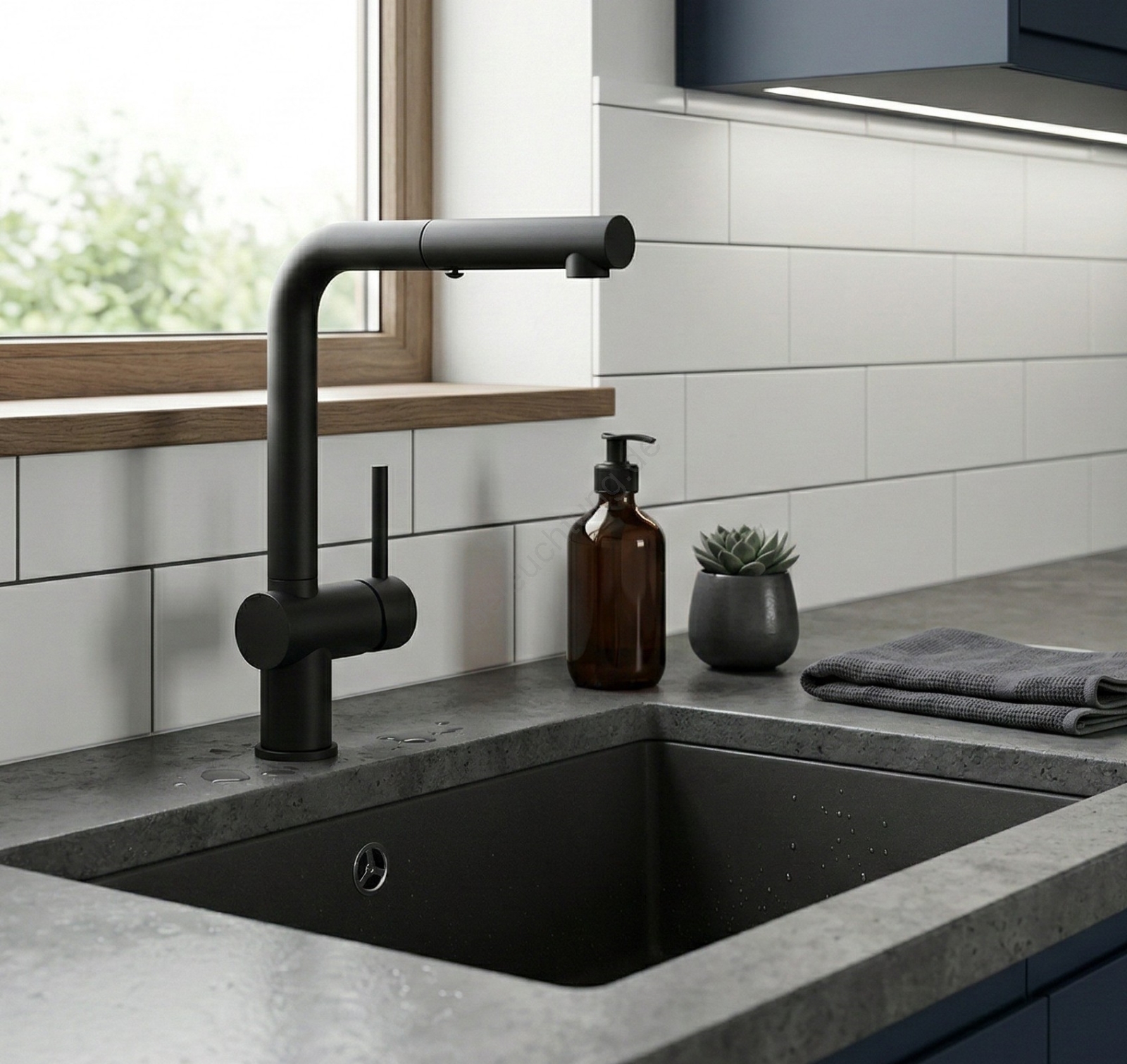 • Ausgestattet mit einem ausziehbaren Brausekopf, der das Abspülen erleichtert und das Erreichen der Ecken der Spüle ermöglicht.
