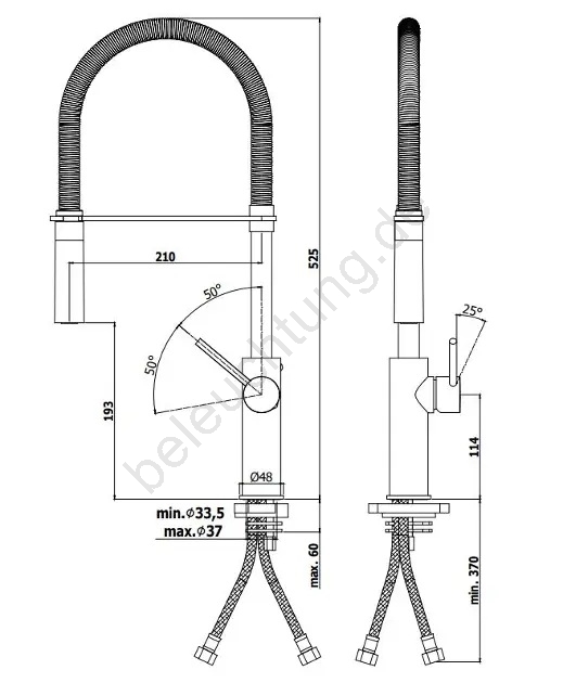 • Flexibler Brausearm mit zwei Strahlarten - Normal- und Brausestrahl.