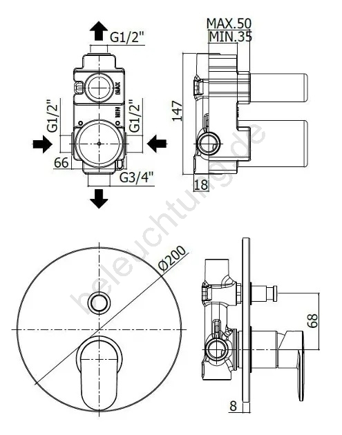 • Die Armatur wird mit Unterputz-Montagekörper geliefert.