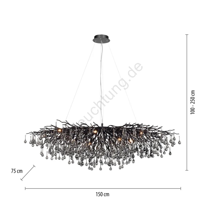 Paul Neuhaus 2031-18 - Pendelleuchte an Kabel ICICLE 15xG9/40W/230V 75x150 cm schwarz