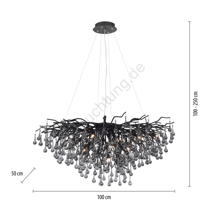 • Paul Neuhaus 2192-18 - Pendelleuchte ICICLE an Stahlseil 10xG9/40W/230V 50x100 cm schwarz