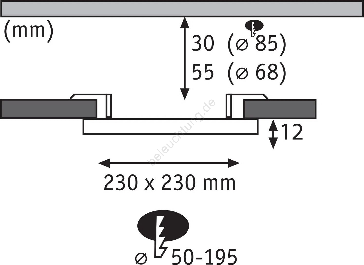 Paulmann 79967 - LED/16W IP44 Dimmbarer Badezimmer-Einbaustrahler AREO 230V 23x23 cm schwarz