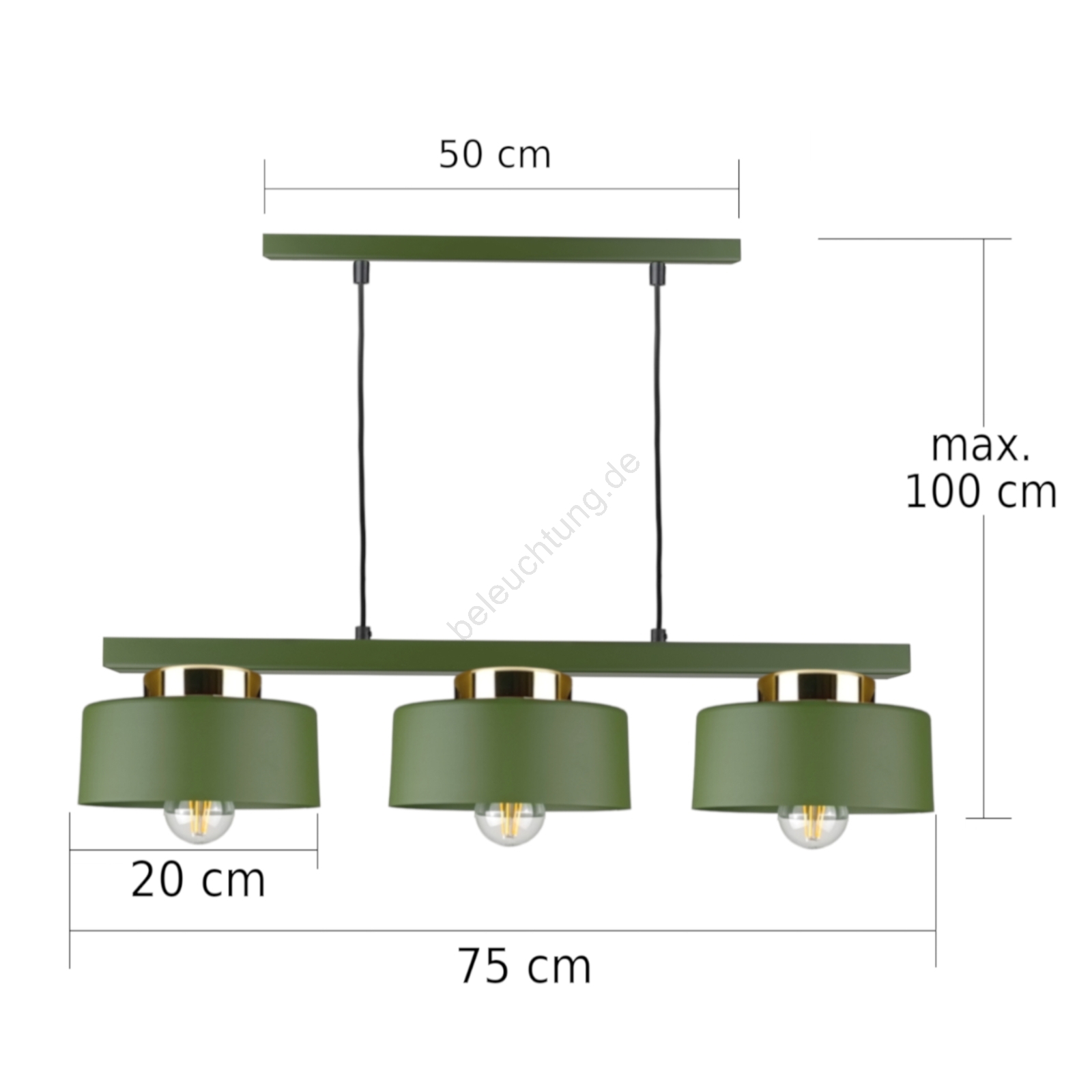 Hängeleuchte mit Seilaufhängung IGNIA 3xE27/60W/230V grün/gold zeichnet sich durch schönes und funktionales Design aus. Eine Glühbirne mit E27 Sockel ist für die Leuchte geeignet. Hier, können Sie andere Glühlampen zu vorteilhaften Preisen kaufen. Sie erhalten eine attraktive Ergänzung für Ihr Zuhause.