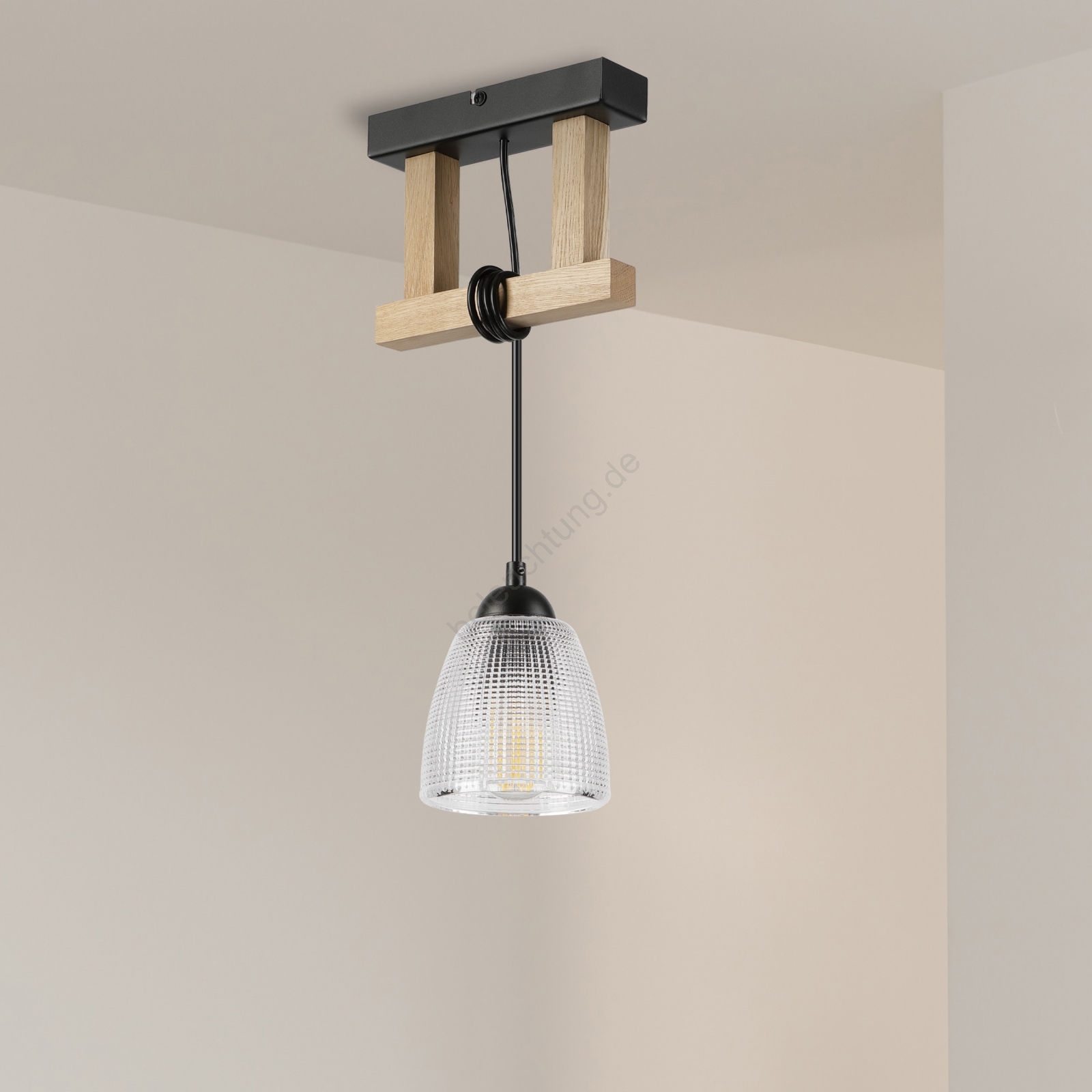 Pendelleuchte an Kabel LEANDRA 1xE27/15W/230V Eiche/Schwarz