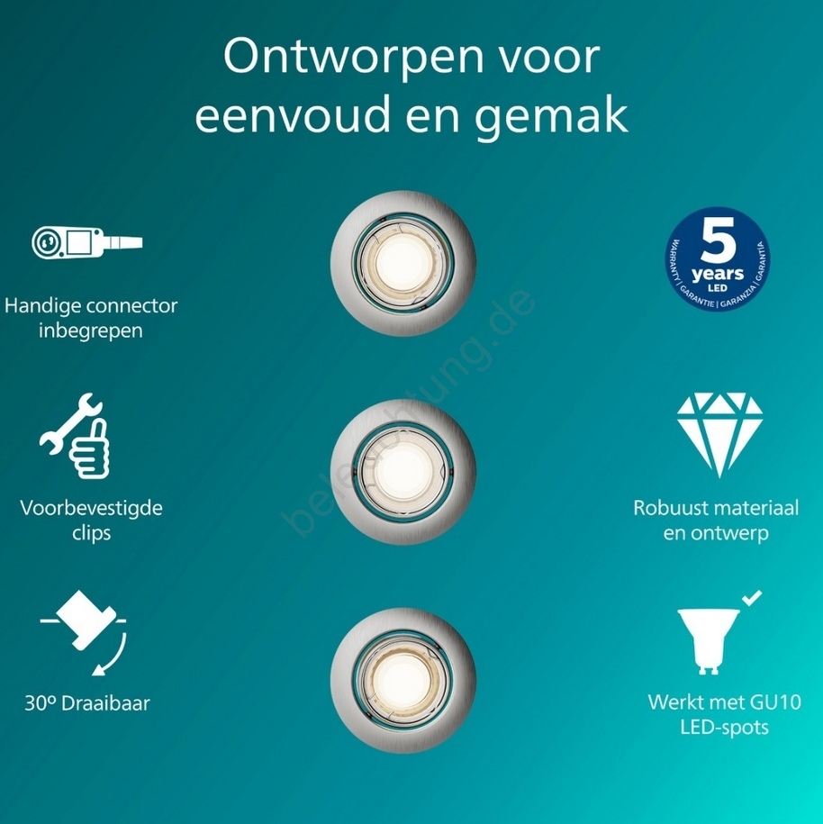 Philips - 3er-Set Einbauleuchten PERIDOT 1xGU10/7W/230V silber zeichnet sich durch schönes und funktionales Design aus. Eine Glühbirne mit GU10 Sockel ist für die Leuchte geeignet. Hier, können Sie andere Glühlampen zu vorteilhaften Preisen kaufen. Sie erhalten eine attraktive Ergänzung für Ihr Zuhause.