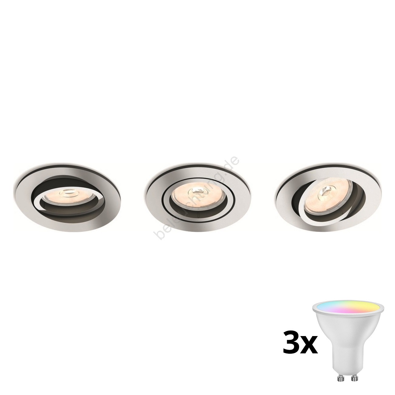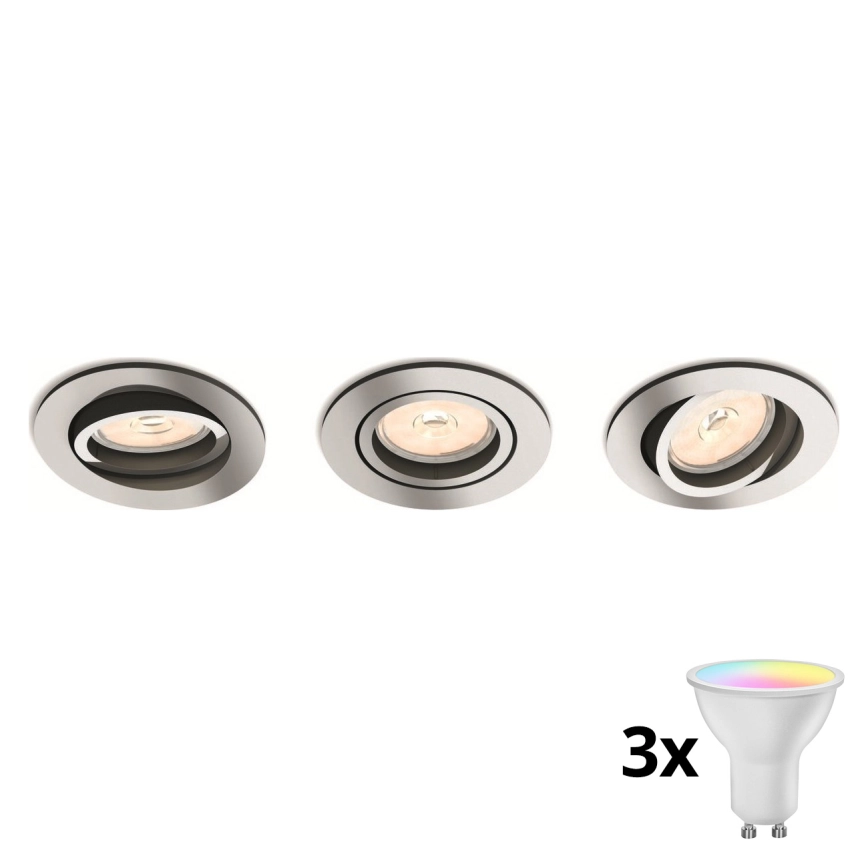 • Philips - 3er-Set dimmbare LED-RGBW-Einbauleuchten 1x GU10/4,8W/230V, mattchrom + Fernbedienung