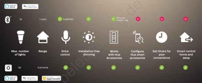 • Zu diesem Gerät können bis 50 Lichter und 10 Steuerungen aus der HUE Serie angeschlossen werden.