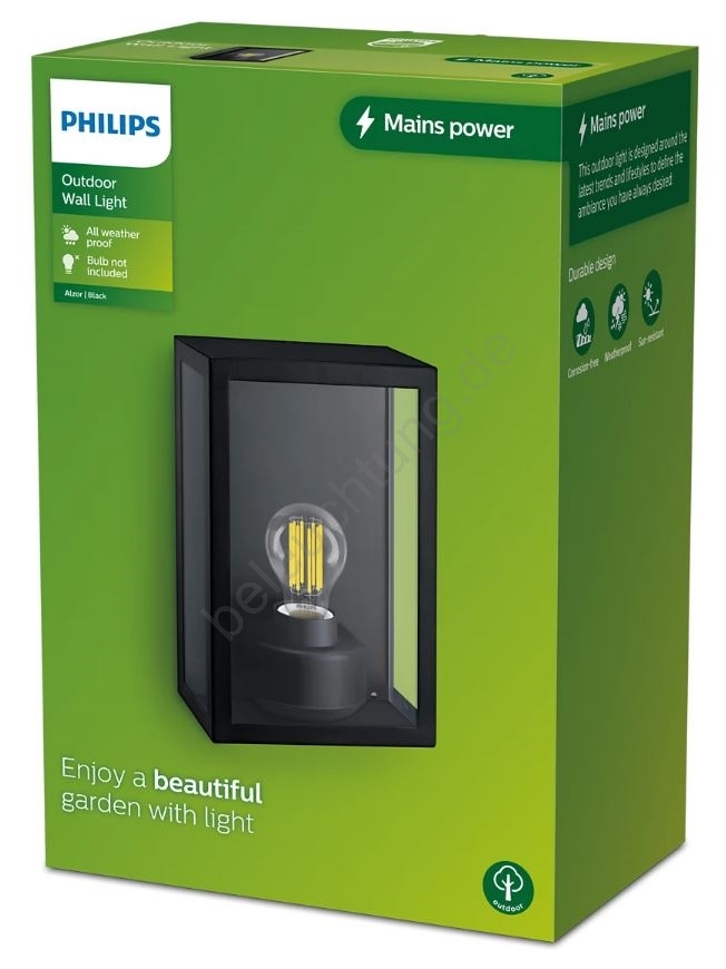 Philips - Outdoor-Wandleuchte ALZOR 1xE27/25W/230V IP44 zeichnet sich durch schönes und funktionales Design aus. Eine Glühbirne mit E27 Sockel ist für die Leuchte geeignet. Hier, können Sie andere Glühlampen zu vorteilhaften Preisen kaufen. Sie erhalten eine attraktive Ergänzung für Ihr Zuhause.
