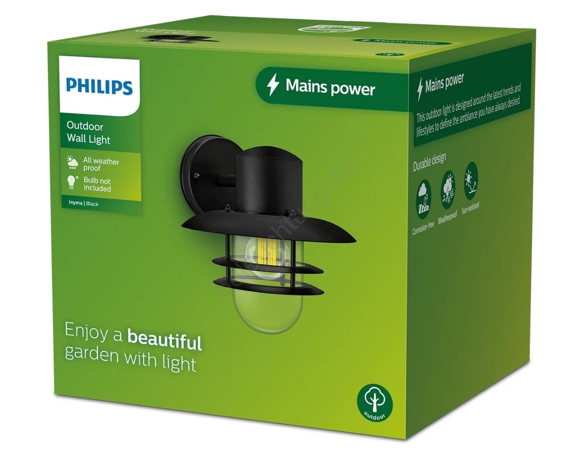 Philips - Outdoor-Wandleuchte INYMA 1xE27/25W/230V IP44 zeichnet sich durch schönes und funktionales Design aus. Eine Glühbirne mit E27 Sockel ist für die Leuchte geeignet. Hier, können Sie andere Glühlampen zu vorteilhaften Preisen kaufen. Sie erhalten eine attraktive Ergänzung für Ihr Zuhause.