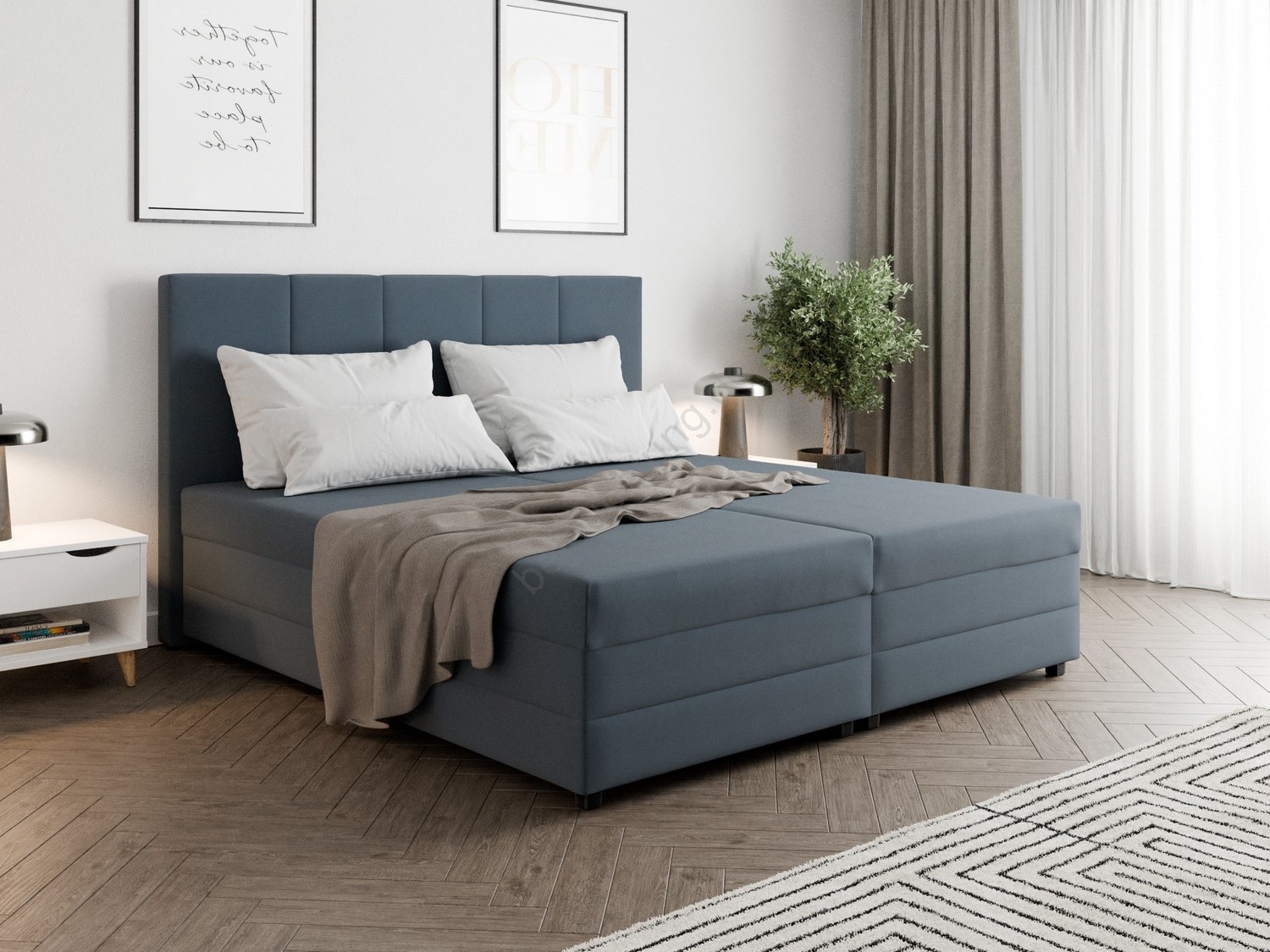 • Gepolstertes Doppelbett mit Federkernmatratzen und hohem, geradem, elegantem Kopfteil.