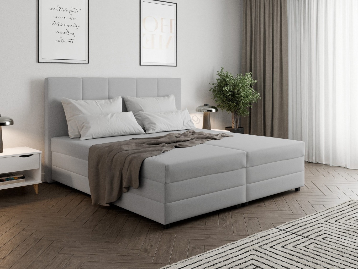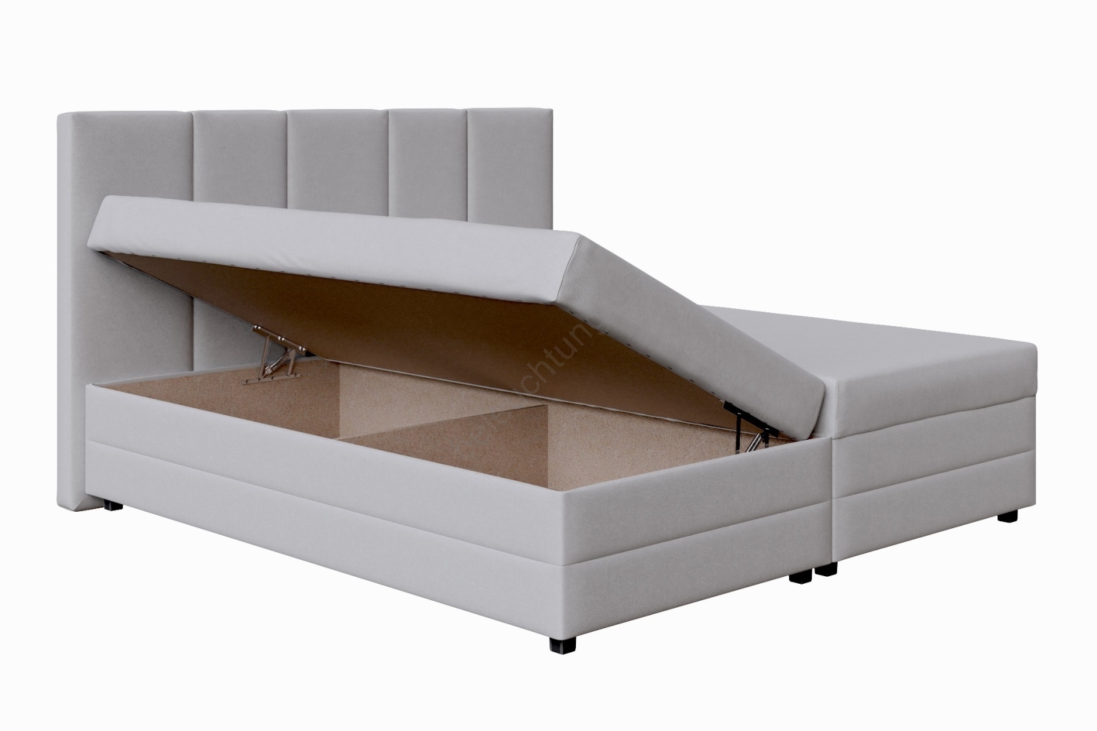 Gepolstertes Bett ISABEL 160x200 mit Federkernmatratze und praktischem Stauraum, hellgrau